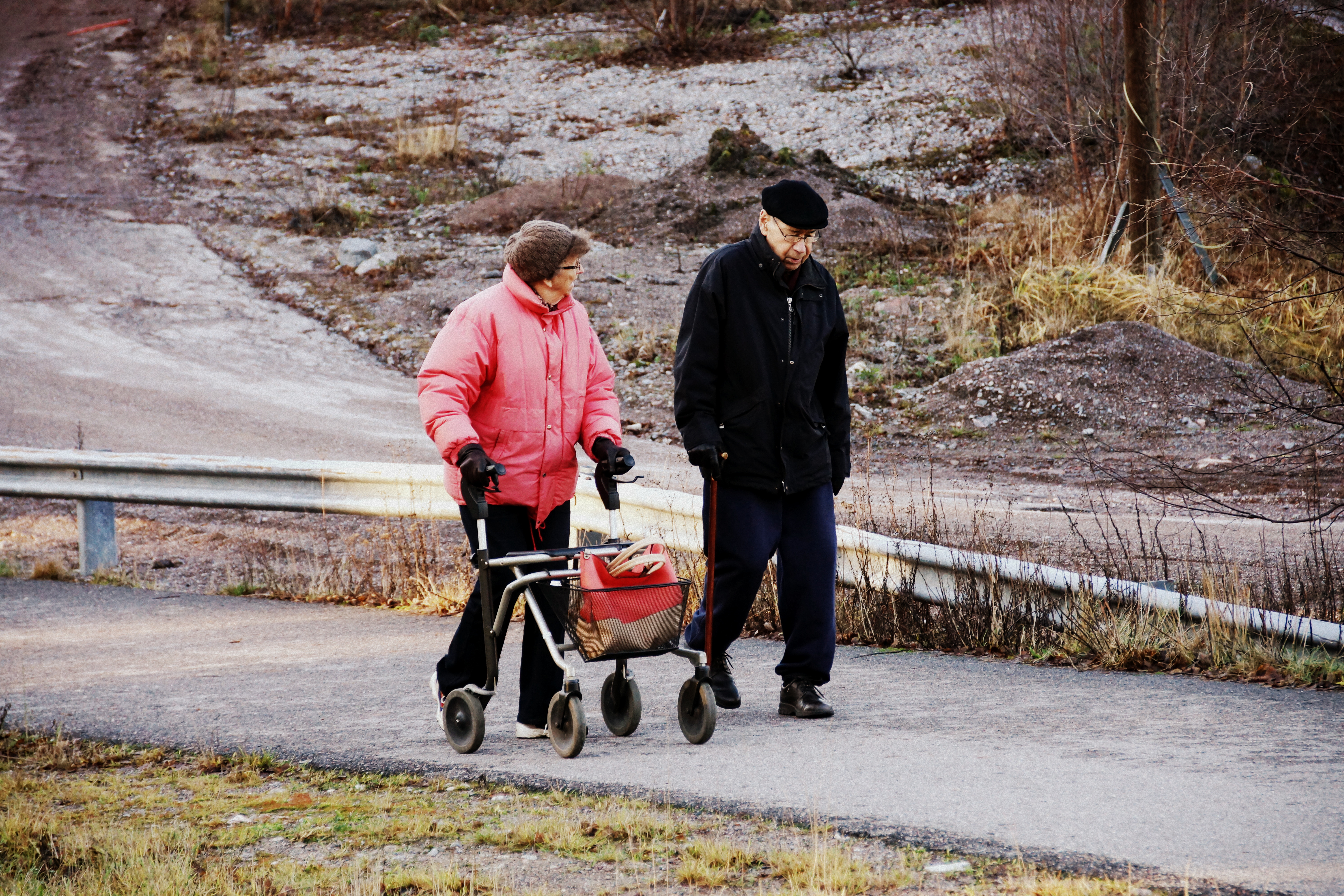 I saw this couple walking, one with the walker and other with cane. The topic golden years, came to mind, is it, golden years that is?