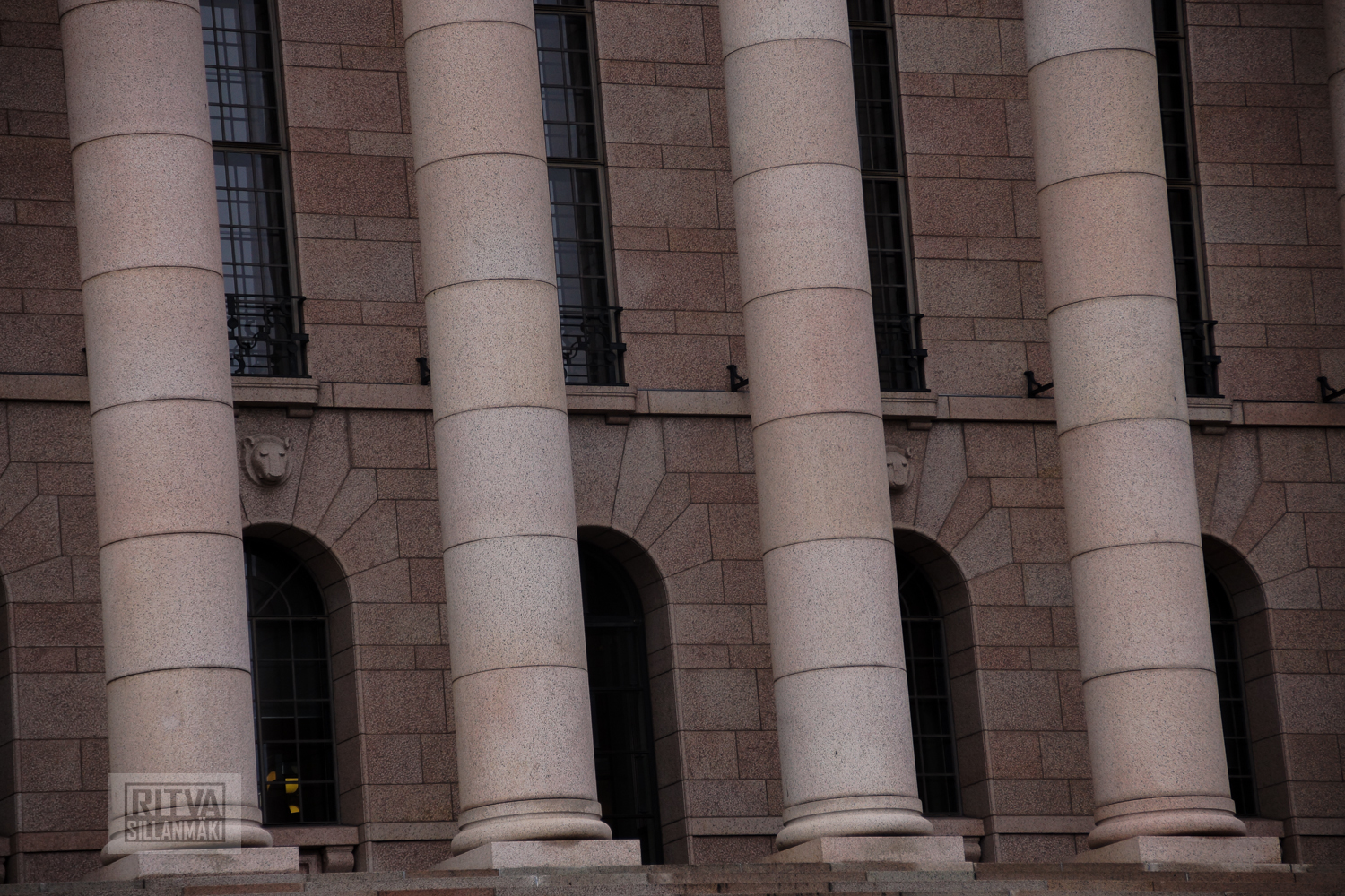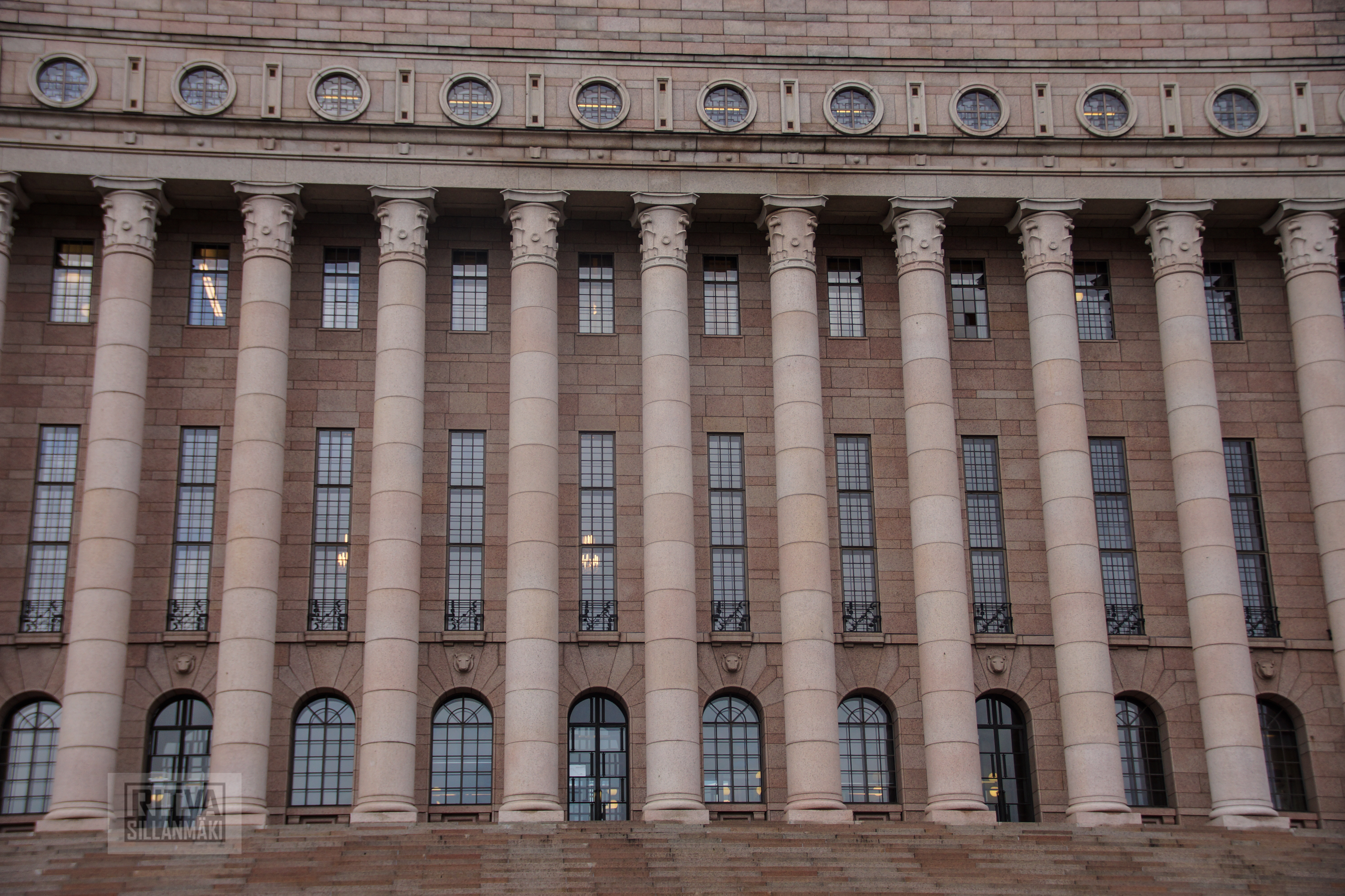 Finland’s 200-seat parliament gathers in this impressive building representing 1920s Classicism. The facade of the building is made of red granite from Kalvola. The main facade includes 14 Corinthian columns. It is across the road from the kansalaistori.