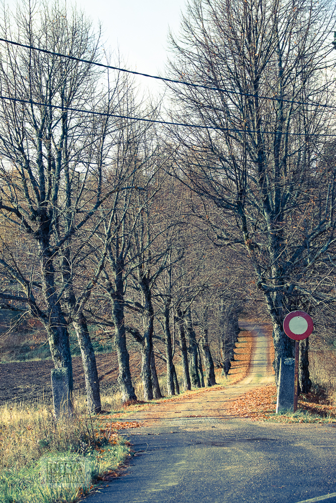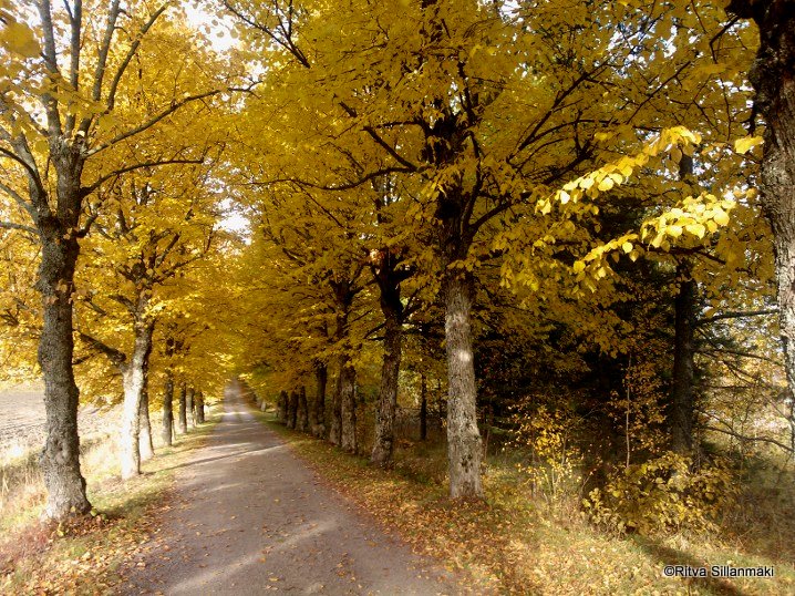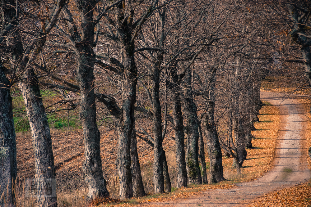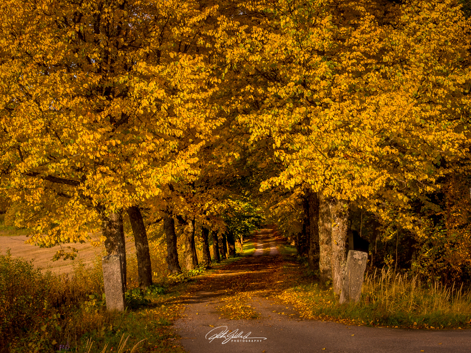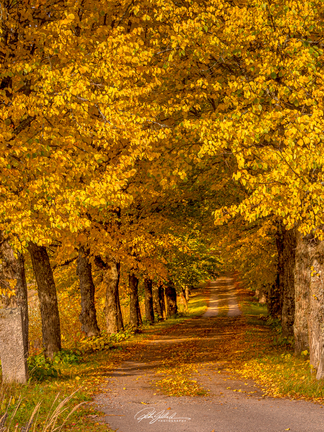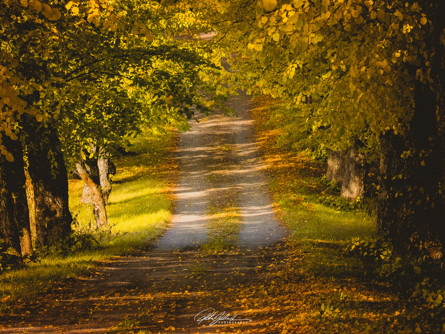 I used to drive past this side road, path weekly, when participating in art classes nearby. I enjoyed watching the seasons changing the colors on this private road. I took a drive purposely to check how it looks with autumn colors taking hold of the nature. I was not disappointed. Depending on the zoom length the colors leaned more to yellows or greens.