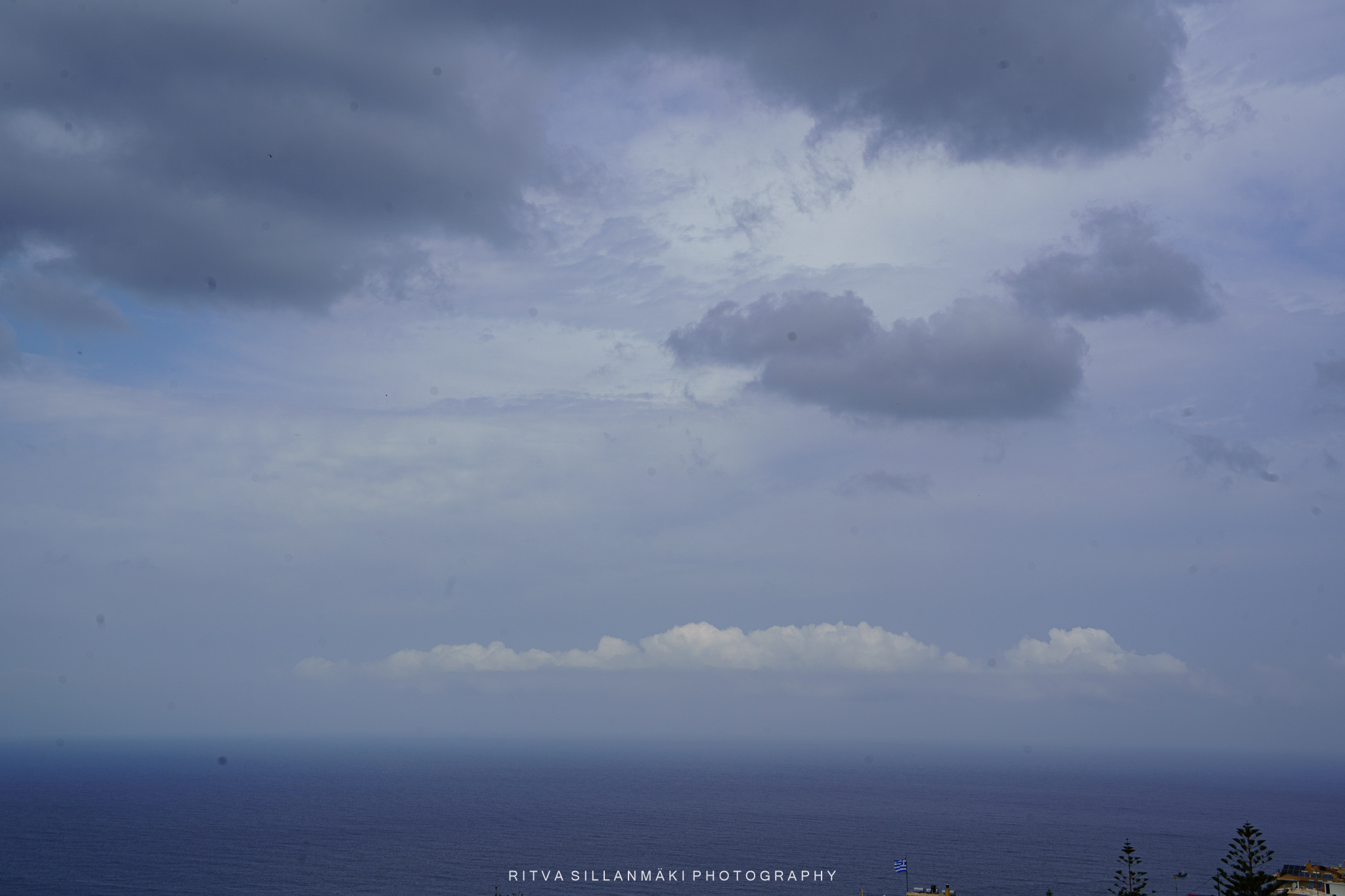 These memories were captured on a beautifully windy, cloudy, and cool day in Crete, our last day, and they resonate deeply within me. I spent a couple of hours observing as the waves with gust crashed against the shore, each crash echoing ln my heart, a melody only the sea could compose. As I sat there, drawn to the rhythm of the ocean, I appreciated the horizon, where the sky met the water in a endless embrace. The invigorating spray of sea water touched my skin, refreshing and full of life, while the salty breeze provided a familiar comfort, reminding me of my connection with the sea, a bond formed through countless sunrises and sunsets. With each gust of wind, I was more in touch with the moment, a clear sense of peace and tranquility.