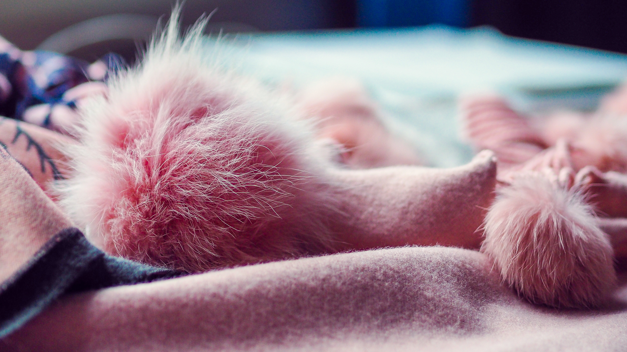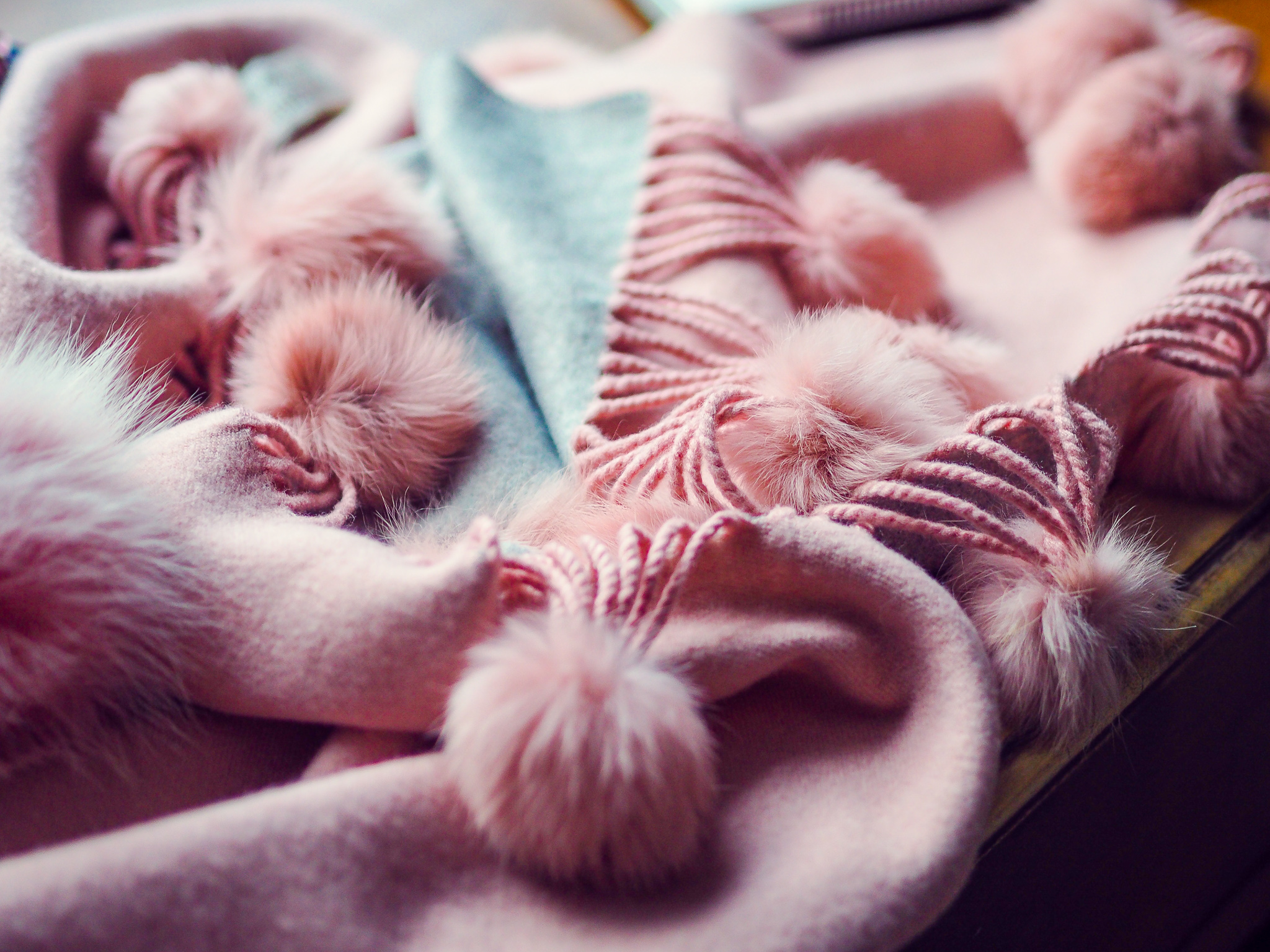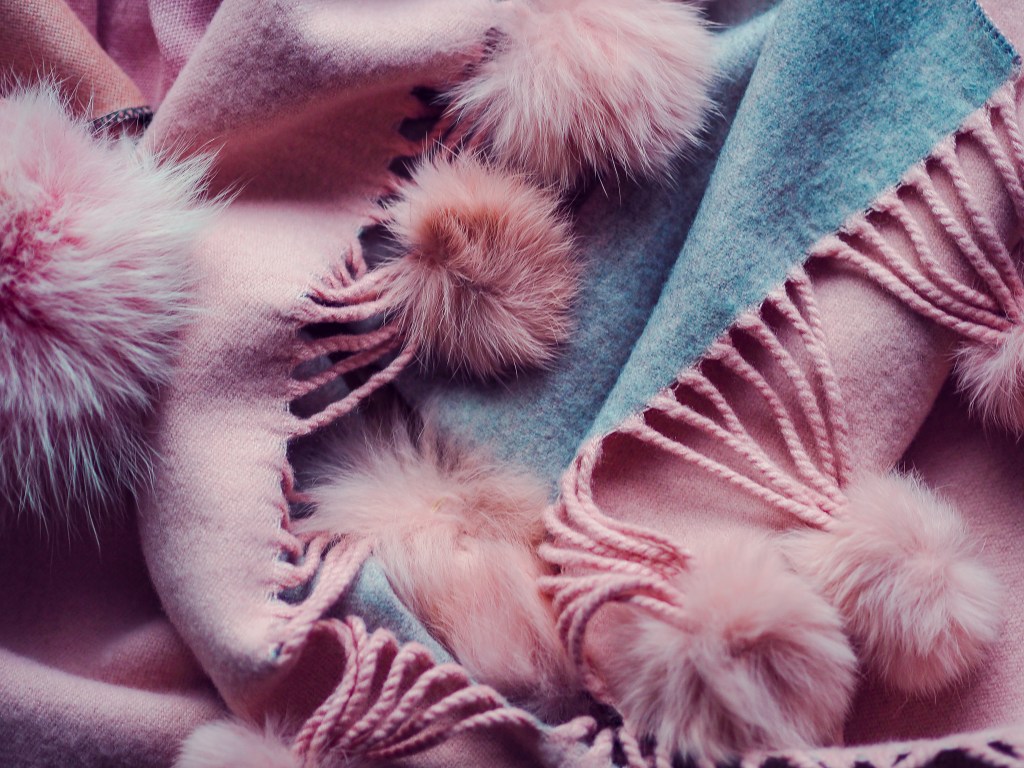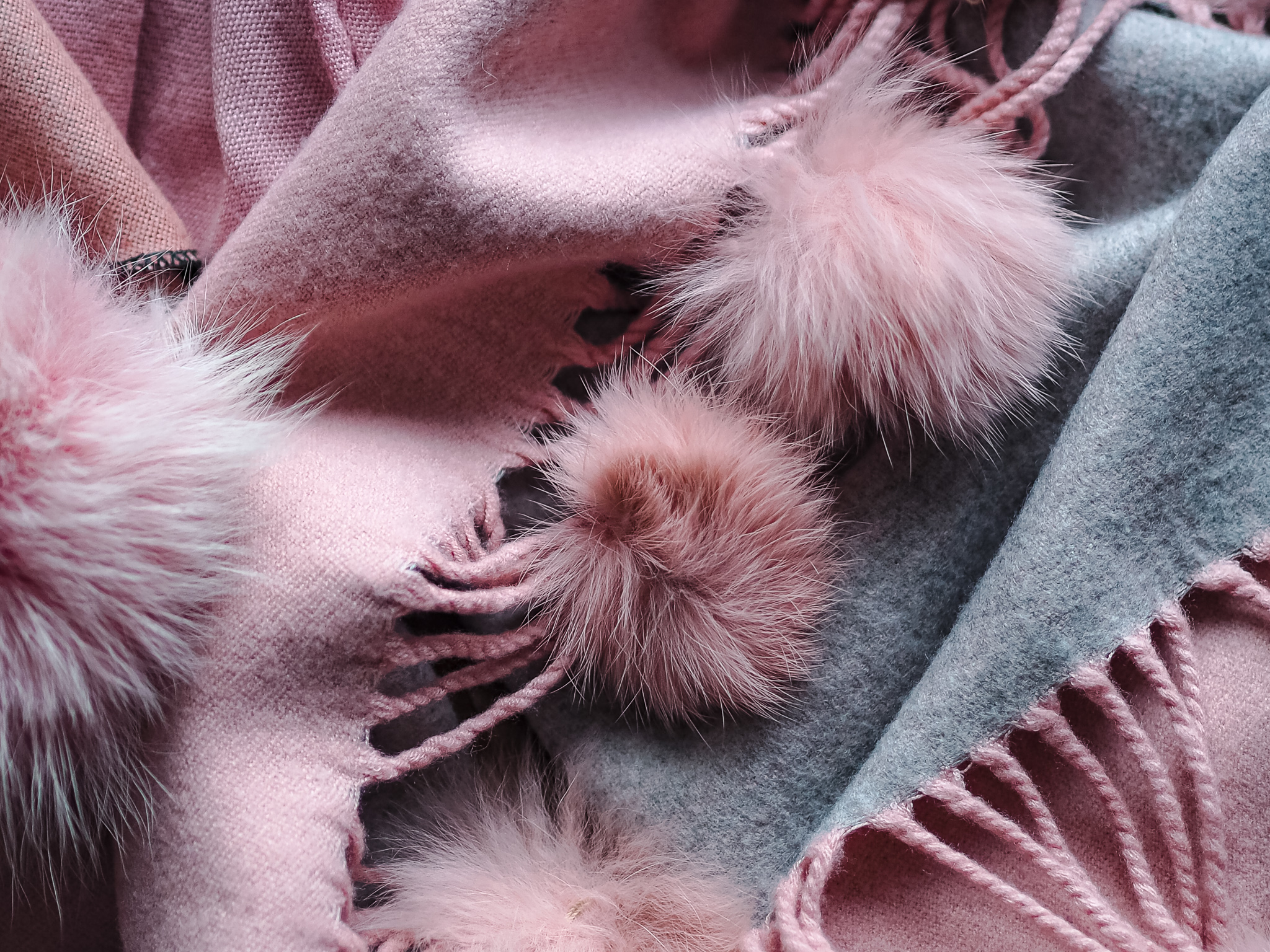 A close-up of pink lipstick tube alongside a fluffy pink accessory, embodying a feminine and stylish aesthetic.