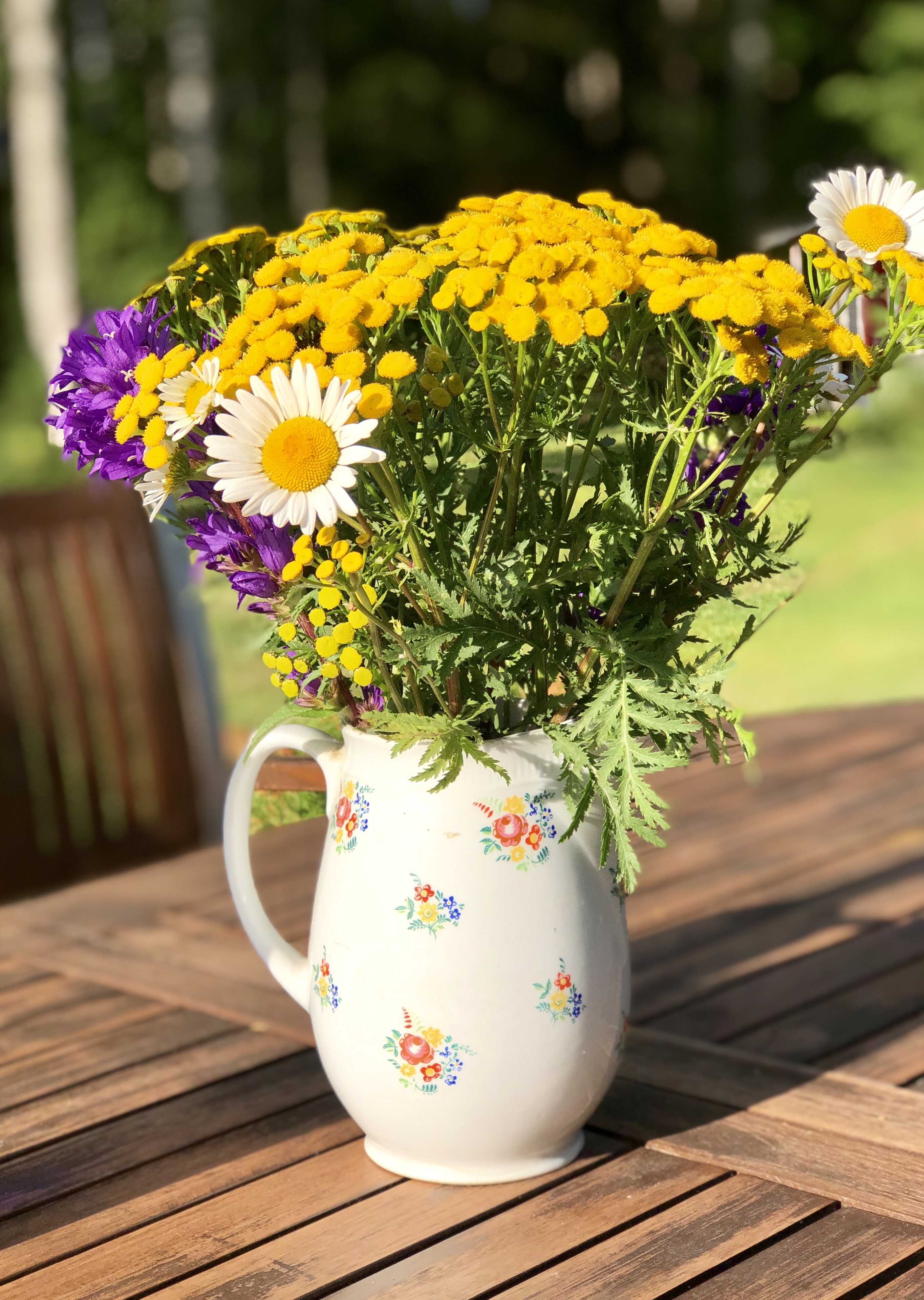 I took a walk on the gravel road and picked summer flowers for my deck