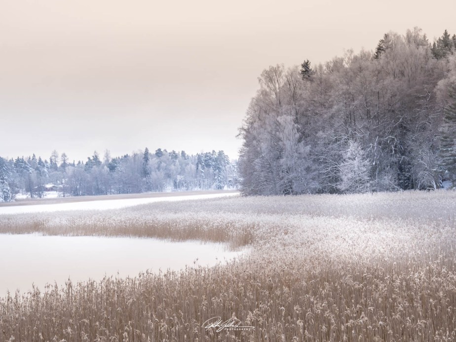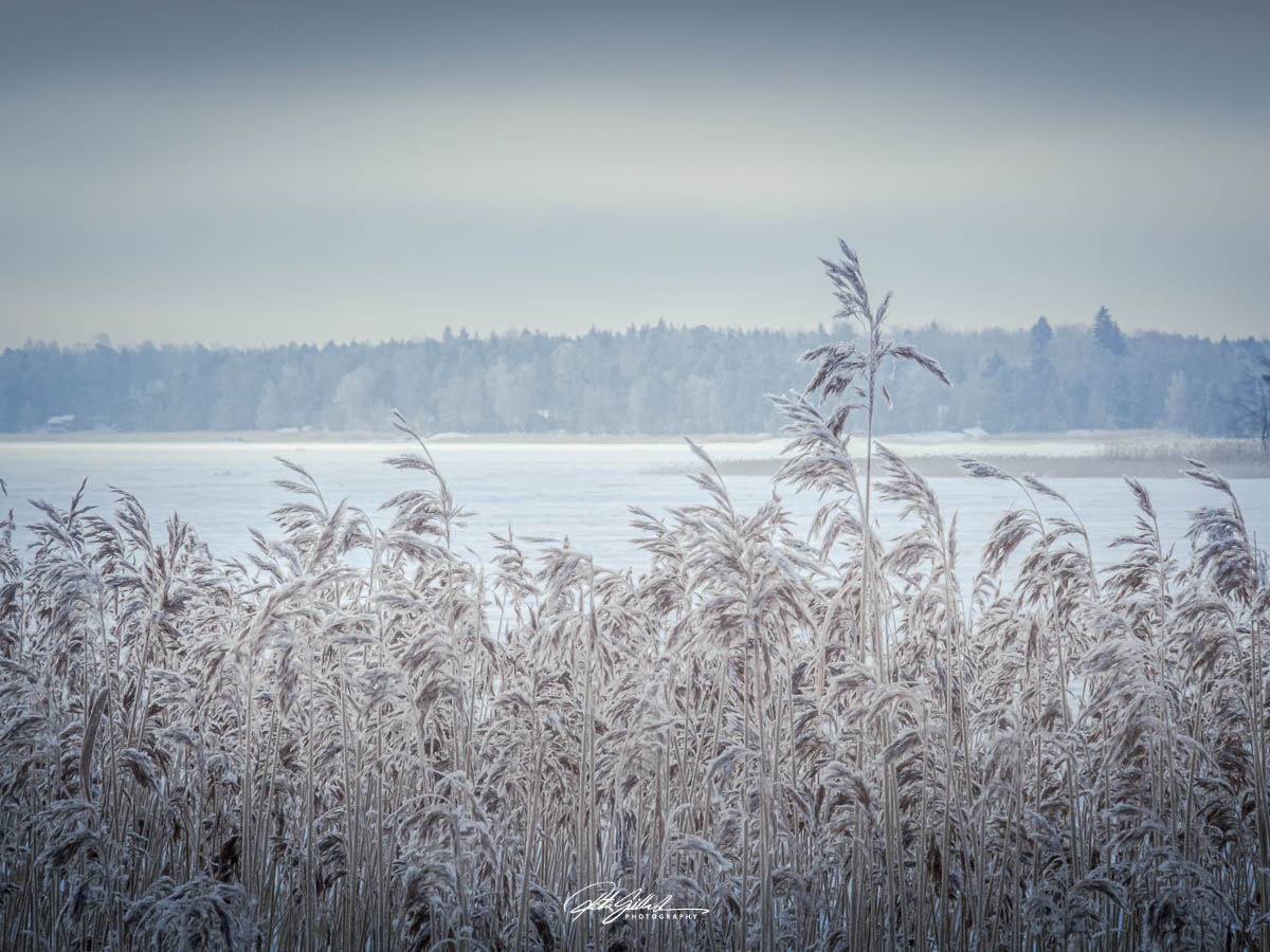 Snowy reeds stand tall and proud in the frosty winter day, their delicate strands shimmering as they catch the soft light of the pale sun. The biting cold fills the air, crisp atmosphere. Each reed, encased in frost, depicts a picturesque scene in the quiet beauty of nature in its peaceful winter slumber.