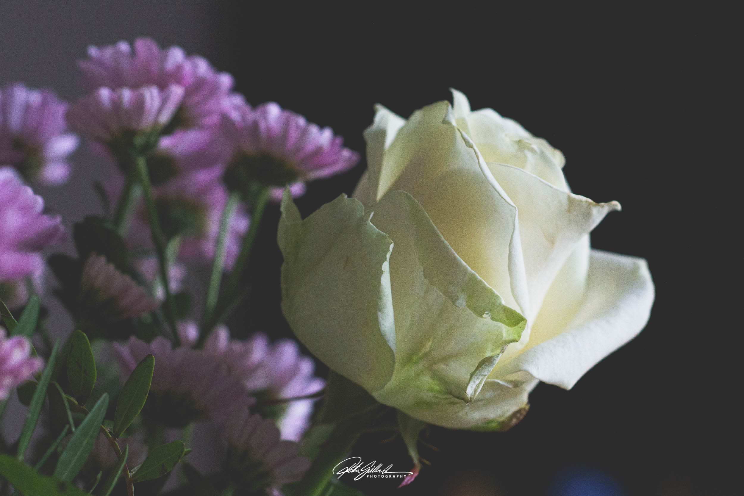 My son had this Planters Pyrat XO Reserve bottle that he was about to throw away (some side information 🙂 The Pyrat gets its name from the Old English word for pirate. The stout bottle of the XO Reserve is also a tribute to this heritage.) I looked at bottle a little bit closer, I noticed that this would make a nice vase for few flowers. I washed, it took the labels of and I had a prop for my photo add three roses and lets shoot. Pretty.