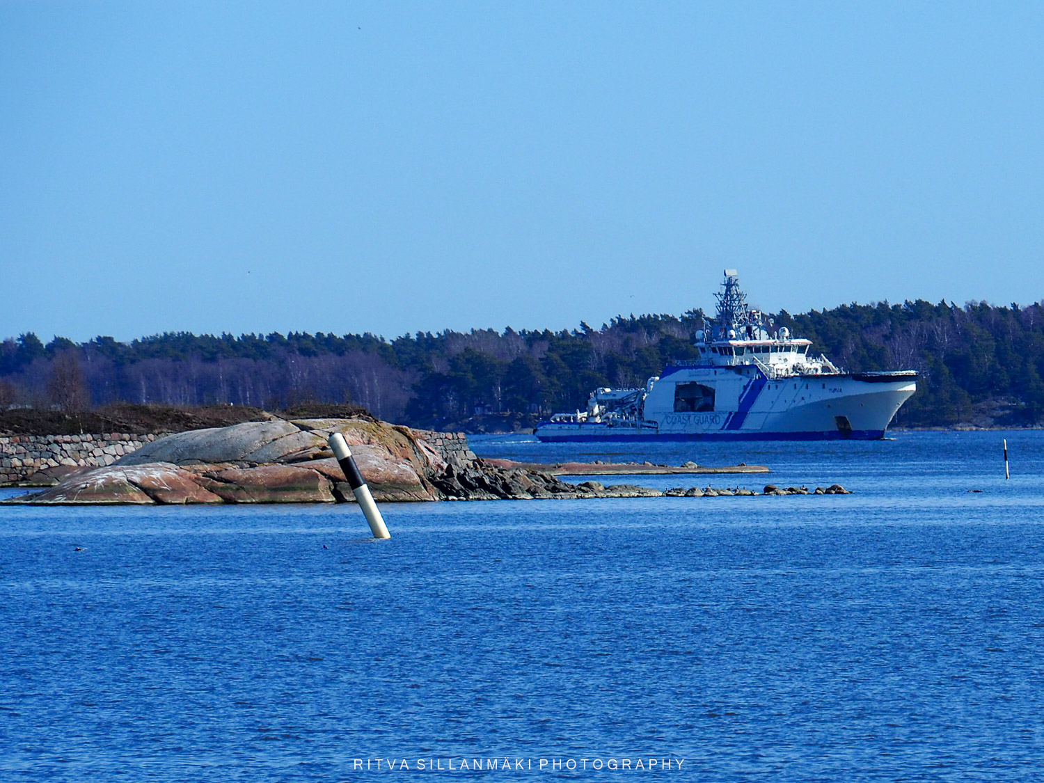 First we went to Kaivopuisto is situated right at the tip of the Helsinki peninsula. It is one of the oldest and most popular parks in the city. There from the dock I took this shot of Suomenlinna. The coast quard was on the lookout