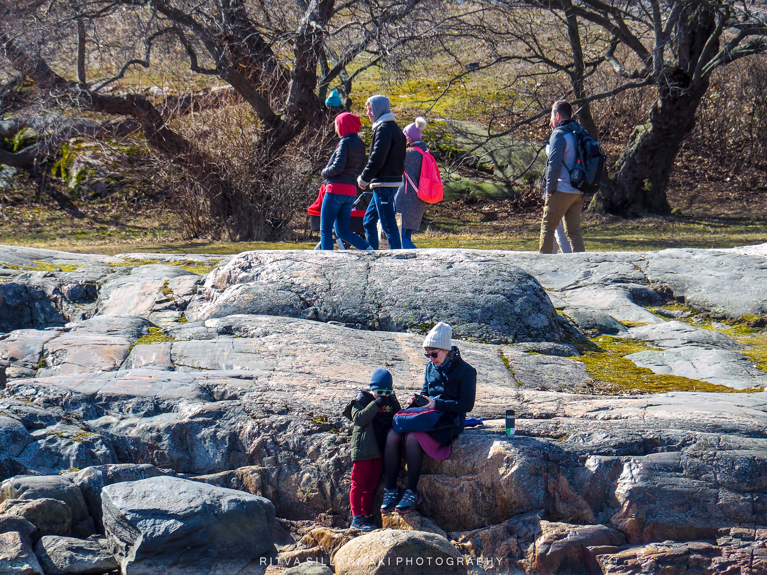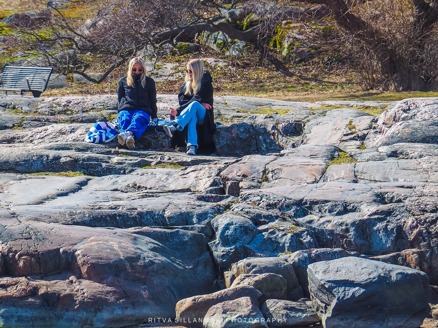 Lots of people walking by the shore, sitting on the rocks. I was surpised about the amount of tourist we had at this time of the year. Lines to buy ice cream were long… spring.