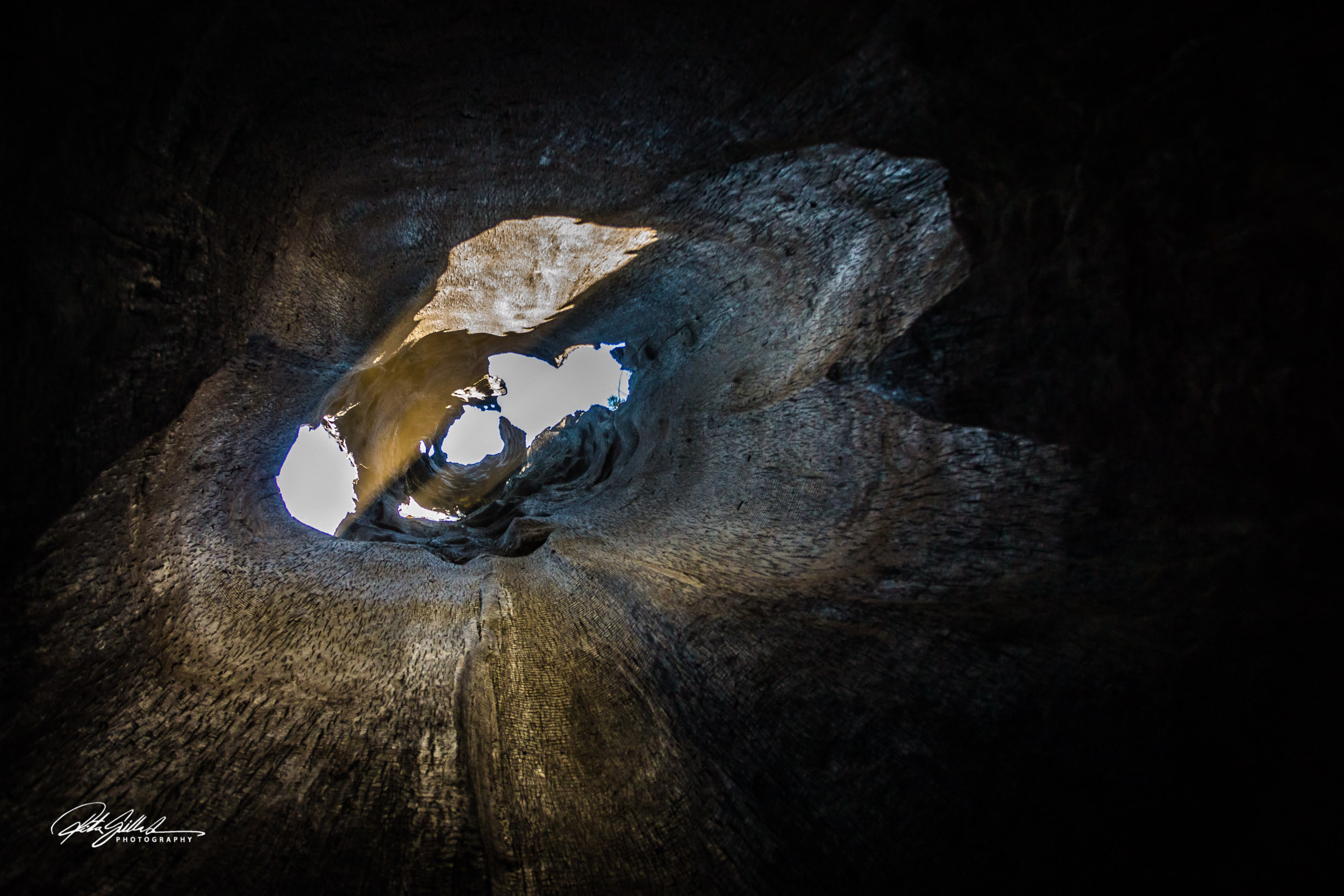 We caught up with a group of people who had a guide with them and so we discovered this three that you could crawl into and you could also see though the tree to the side and the top of the trunk a hollow tree. One more thing to be amazed about.