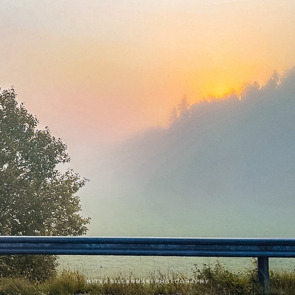 A warm September morning with mist over the fields still at seven, not yet eight :-), sun shining down gently, casting a golden hue over everything. The soft rustling of leaves , while wildflowers peek through the dew-kissed grass, adding splashes of color to the tranquil scene. Birds chirp, creating a cheerful symphony that fills the air, their sweet melodies .. As I stroll through the road, the earthy scent of damp soil creating an aroma that invigorates my senses. I can’t help but feel a deep sense of joy. This natural, simple countryside beauty, I really appreciate the little things that often go unnoticed. So pretty, just love it.