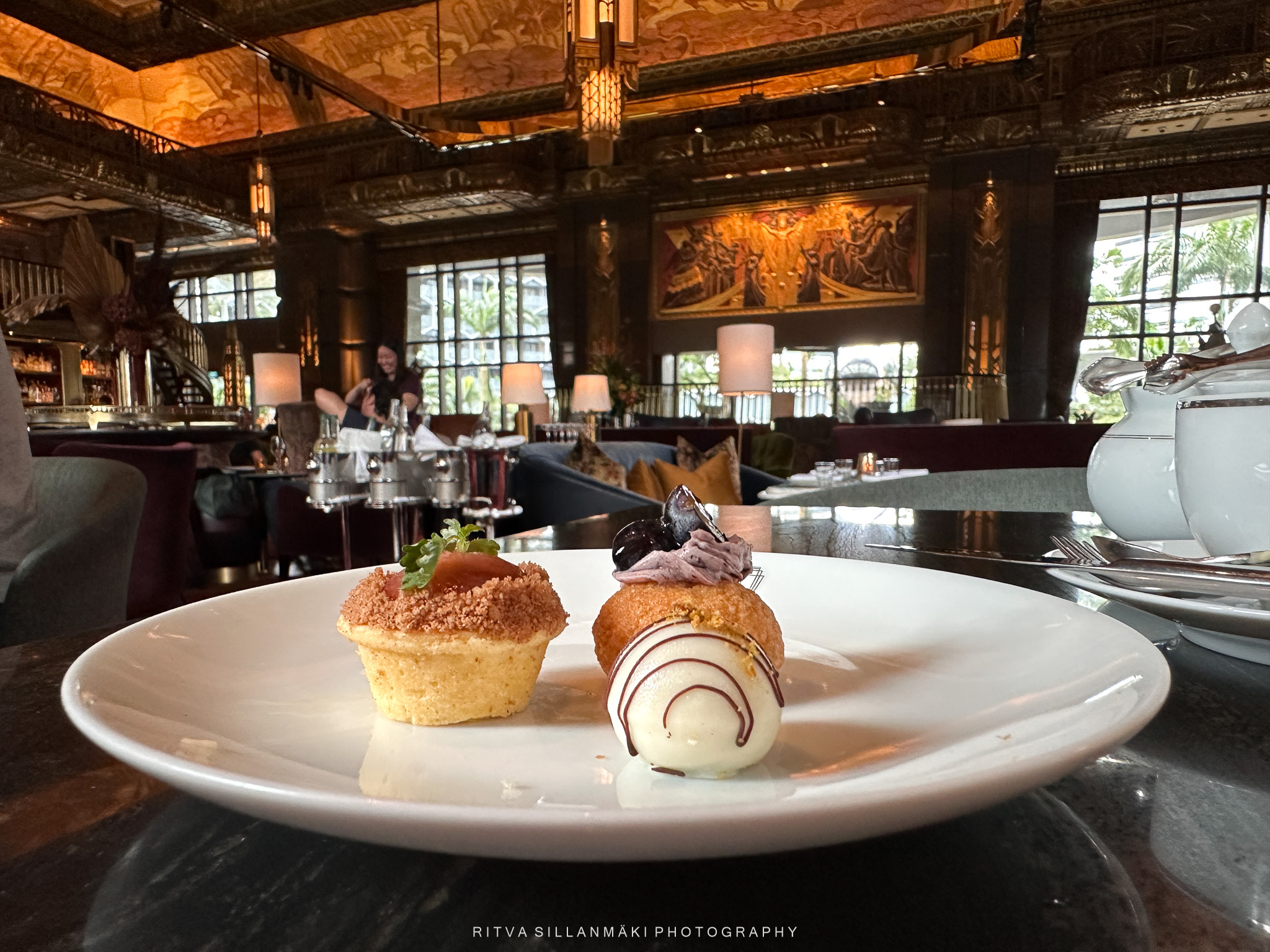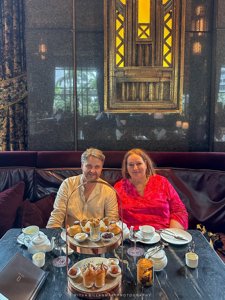 We are not used to dining or drinking in opulent surroundings like this, but the staff made us feel very comfortable from the beginning. We had reserved afternoon tea, so tea we had. The 68 SGD order included a welcome drink, two types of tea or other soft beverages and a collection of savory and sweet bites. For a while we didn’t touch the food because we just wanted to look at the beautiful set up. We felt like king and queen for two hours with the service and everything we consumed. I haven’t googled yet what were the dishes we ate, for example vol-au-vent is not in my vocabulary, but they were delicious. Here is a list of them to those of you who are in the know.
