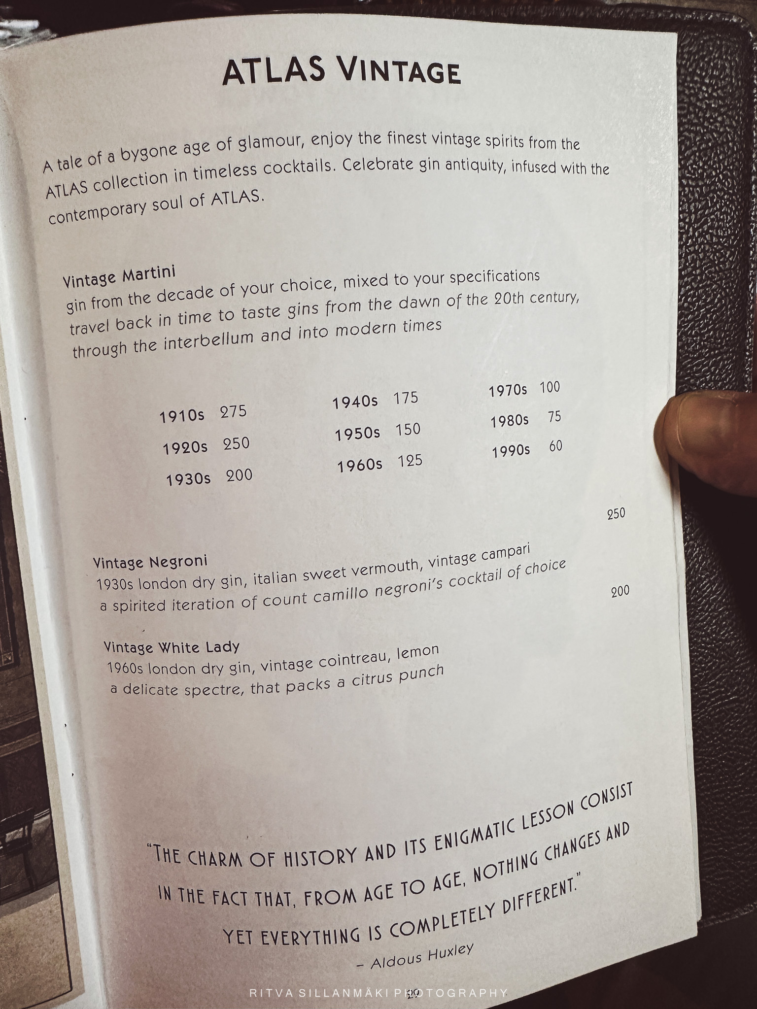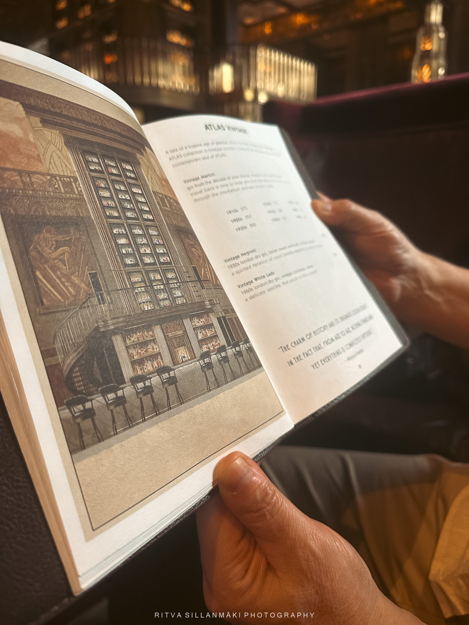Stepping into ATLAS bar was like stepping back to the roaring twenties. Words can’t really express the experience we had at ATLAS Bar. So luckily, we have a few pictures to explain. Even though it felt like a crime to gawk and take pictures because of the serene and affluent atmosphere. But being layman/layperson, we got over the feeling really fast.