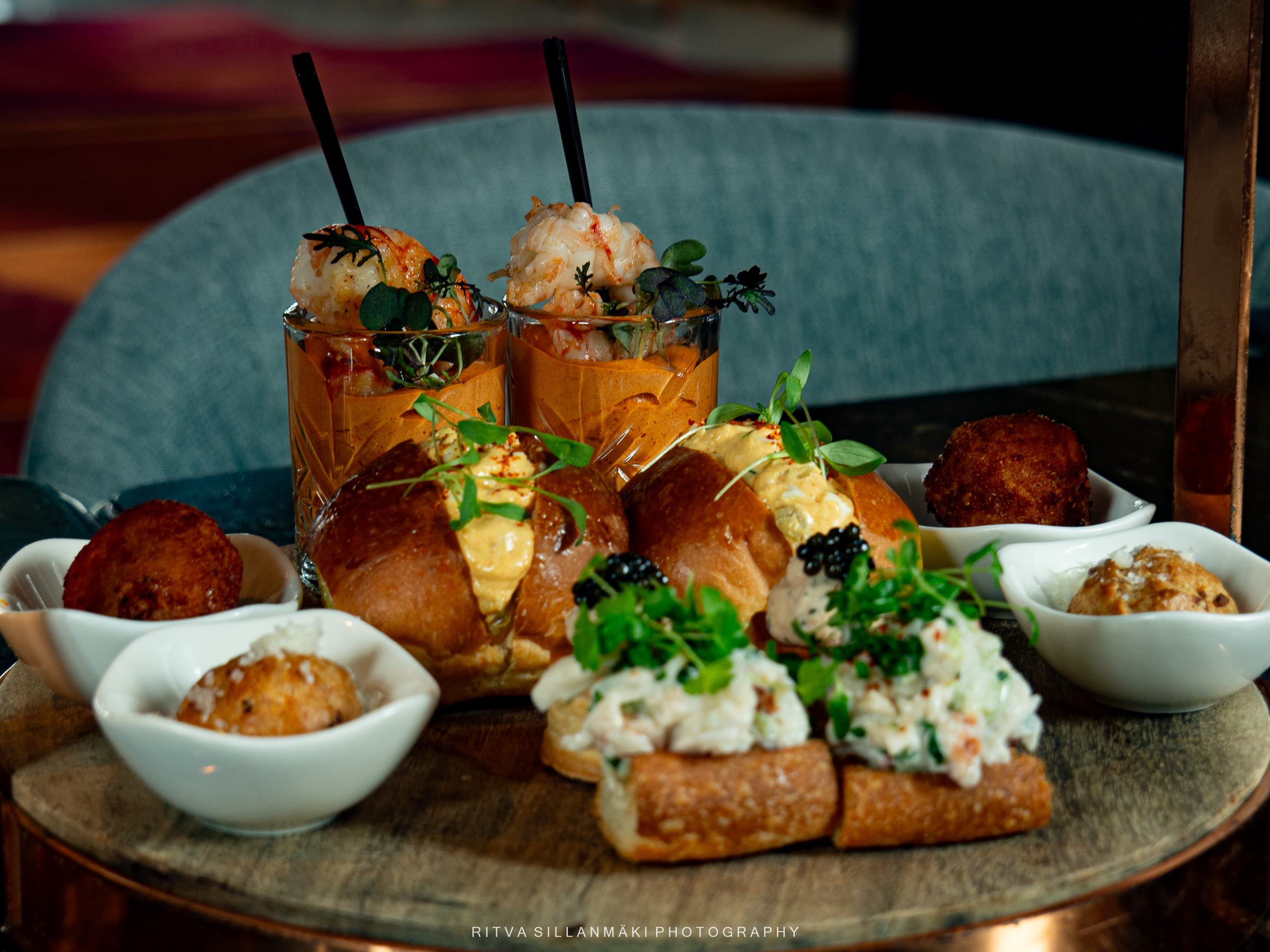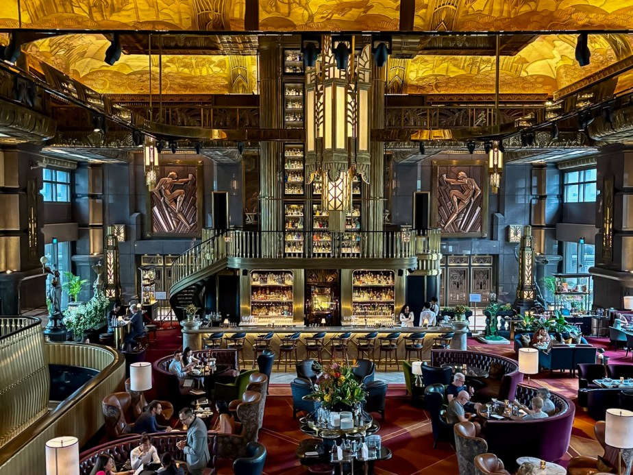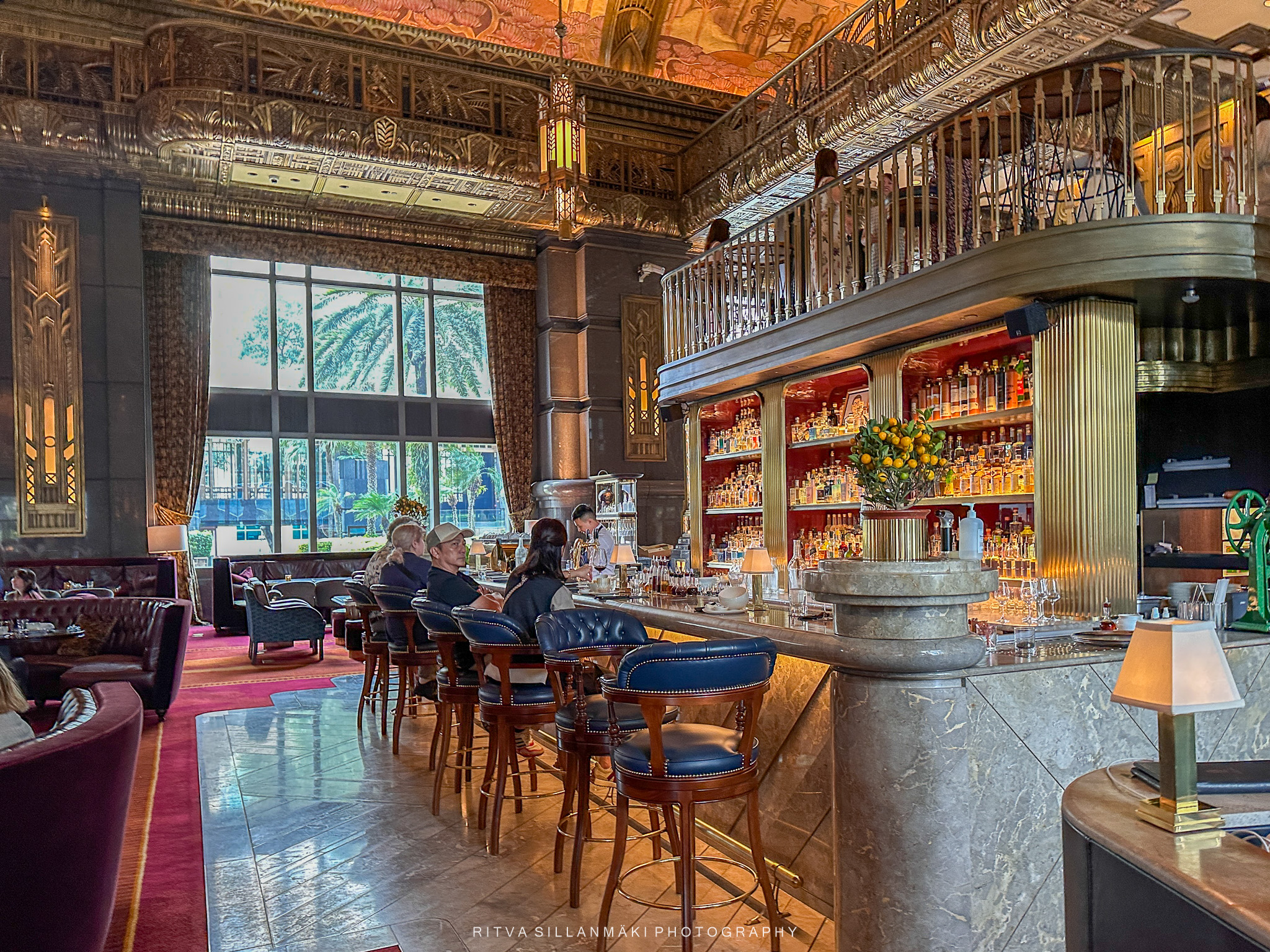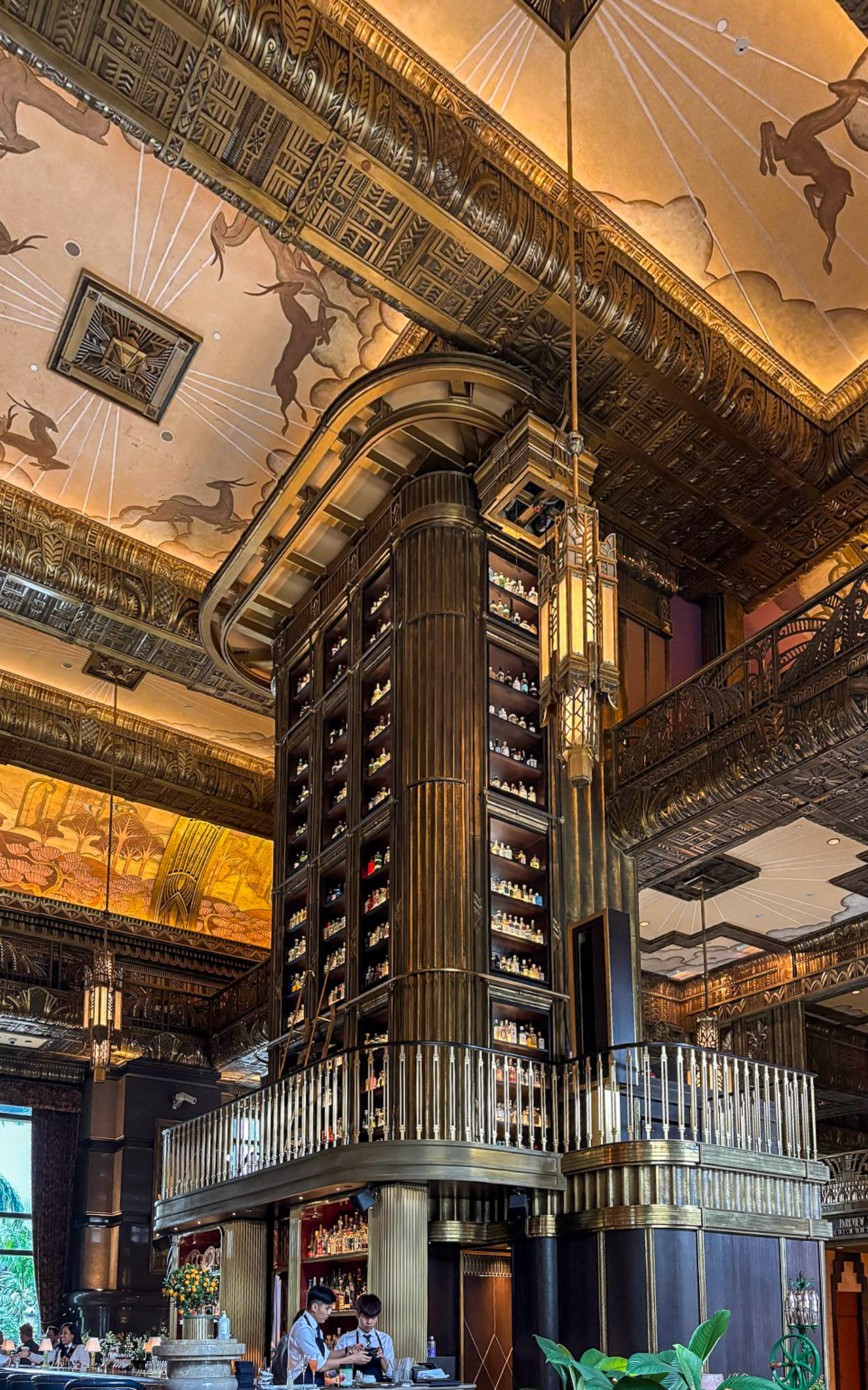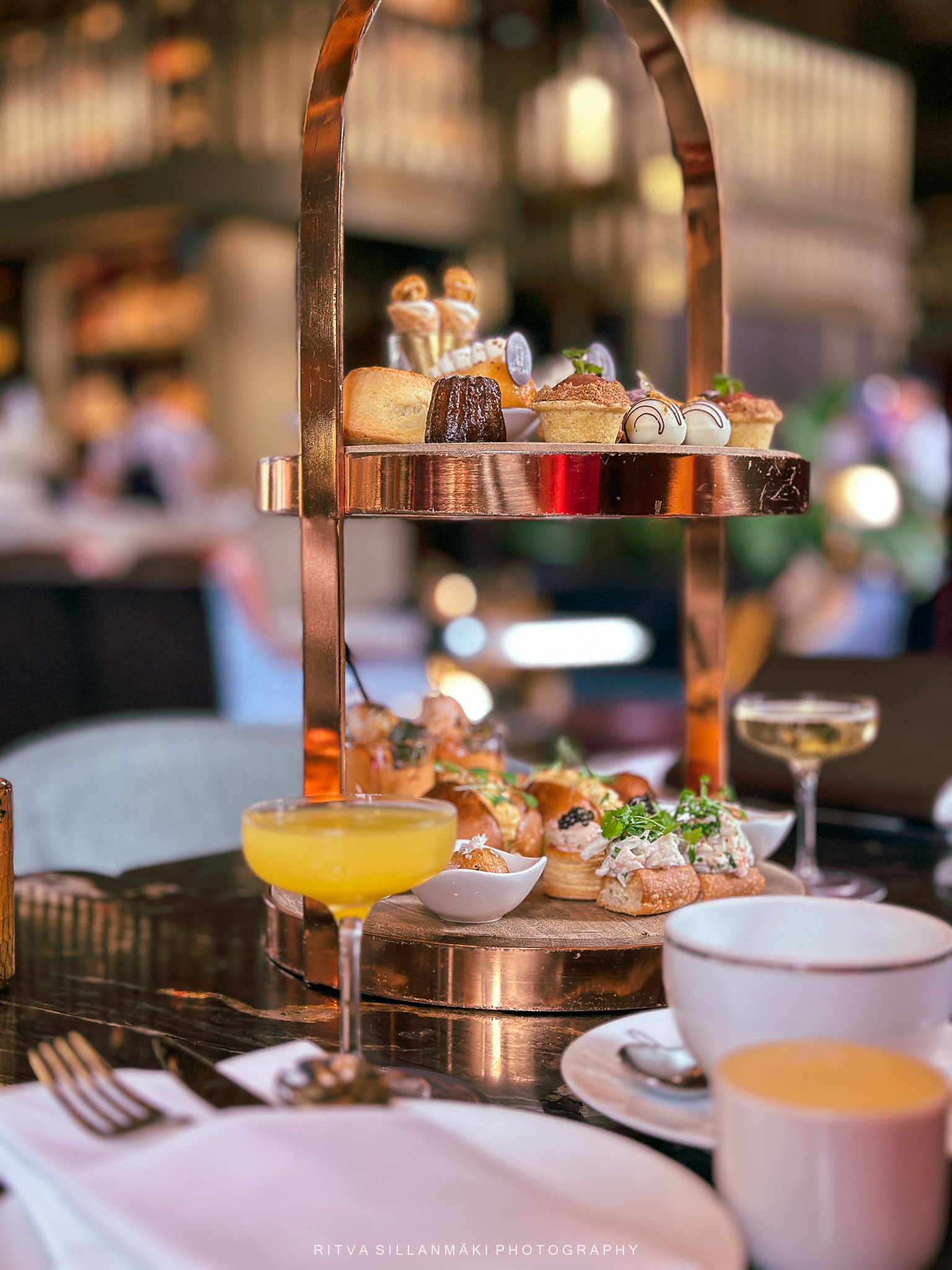 We had reserved an afternoon tea at 3 pm, so in we go. Reservations for the afternoon tea are always recommended because the bar can be fully booked. Inside of the ATLAS Bar was even more stunning. I couldn’t take my eyes off the centerpiece bar, the magnificent tower of gin, located at the far end of the area. The tower holds over 1300 gins and is two stories high. I can only guess how they get the bottles down from the tower. When we were present, I didn’t see any acrobats climbing the structure and flinging down bottles to bartenders.