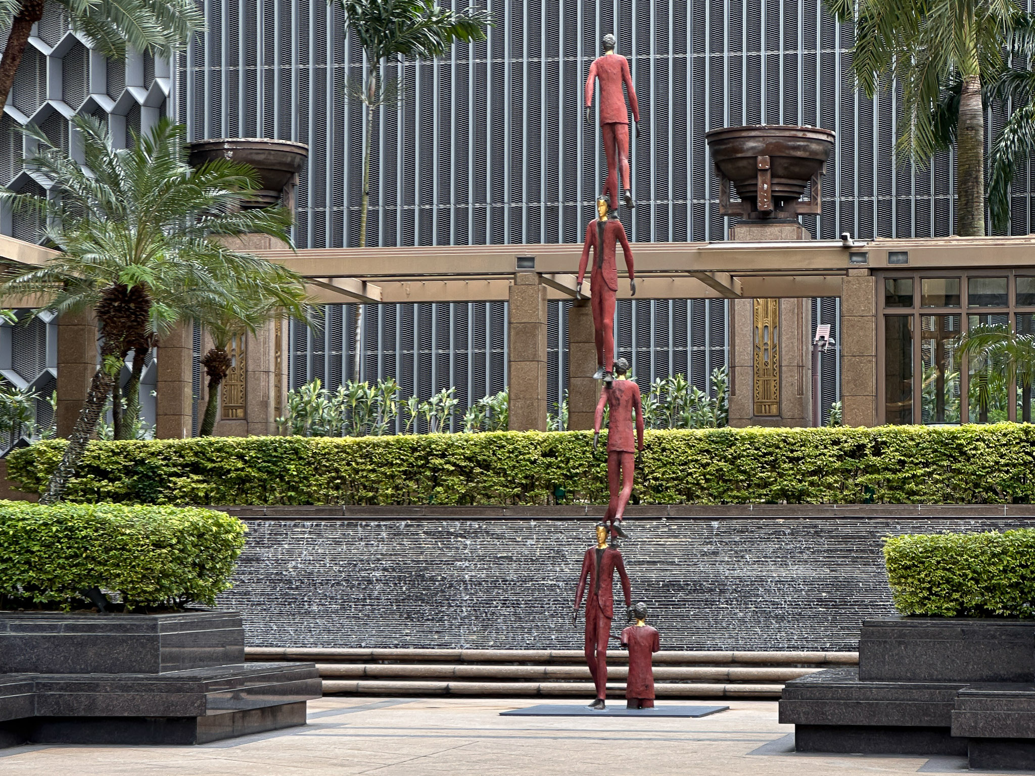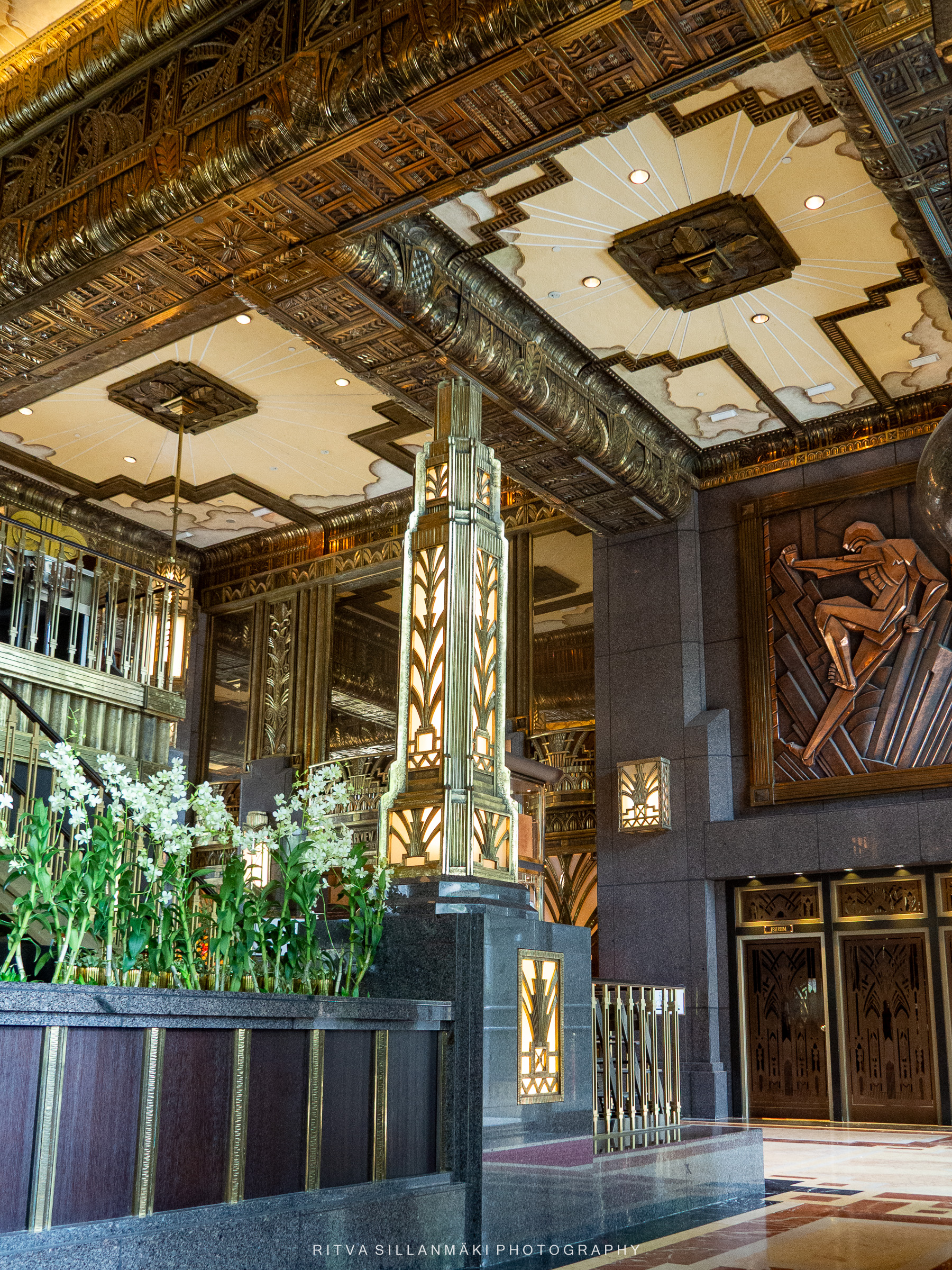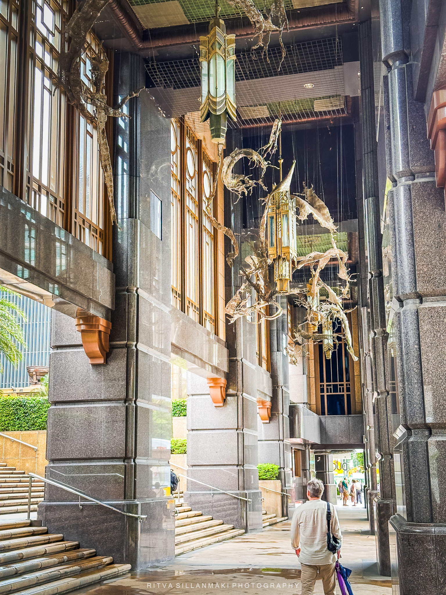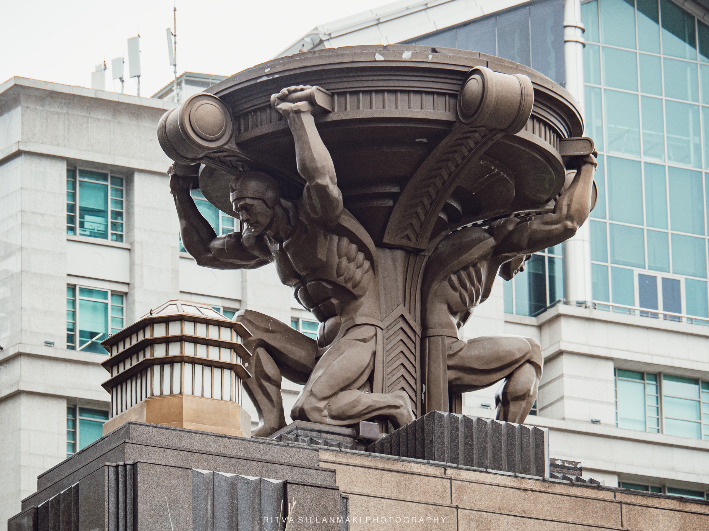 The money they must have spent to let’s say recreate a building like that and even the courtyard in front of the building was like an art gallery. The gigantic statues of men holding balls in their hands and other impressive statues, the gargoyles guarding the building and overall décor just spoke volumes of how much time and resources were used to create this marvel. The exterior surface of the building is clad in brown granite, bronze, lacquer, and glass, so I’ve been told by the internet. The building is sometimes referred to as the Batman building by locals because it reminds of Gotham City. The interiors drew HBO’s “Westworld” to use it as a filming location in season three of the dystopian science fiction series.