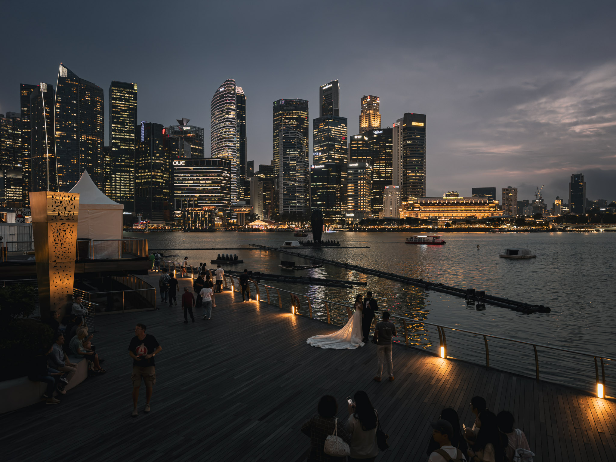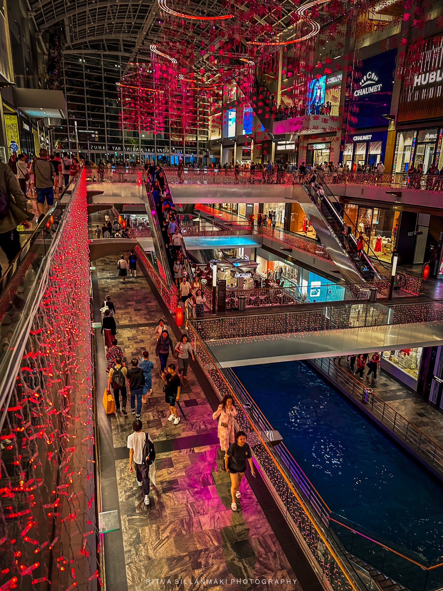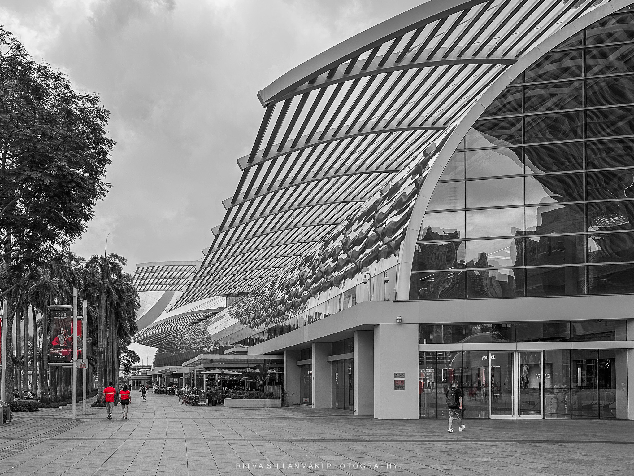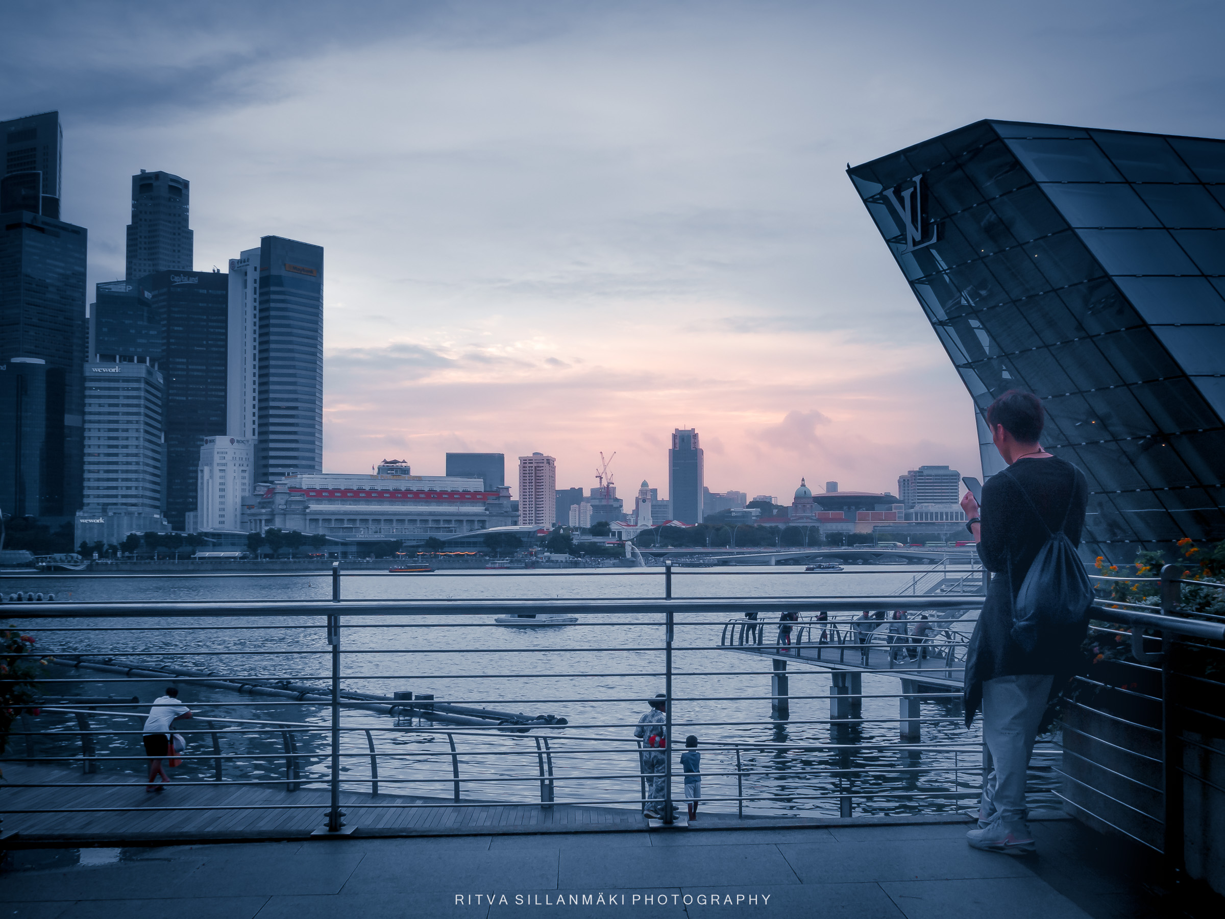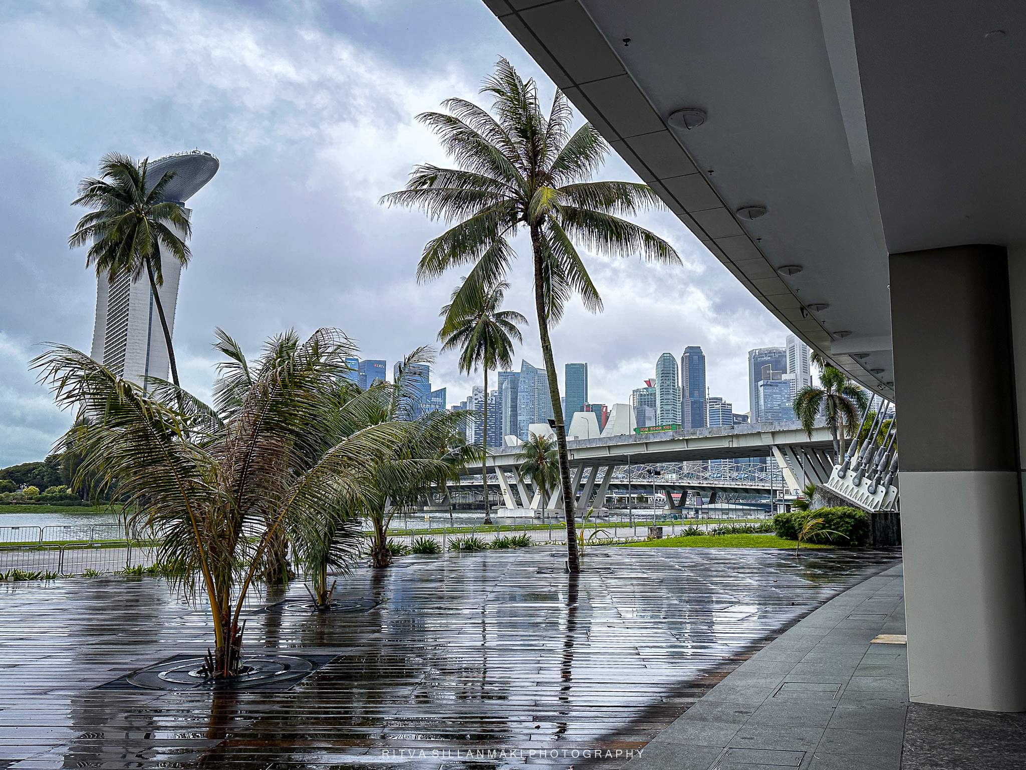 To capture the Water and Light Show in Marina Bay was also hard. The lit skyscrapers as a backdrop were obviously nice but documenting the show proved to be challenging. What was really fun however was that the show was so close to the event area that you got wet by the showers from the fountains. People in the know were prepared with raincoats and umbrellas but I wasn’t wise enough. Fortunately, it was a warm night. It goes without saying that the area was a really popular spot for photographers. We saw wedding and fashion pictures taken by the bay.
