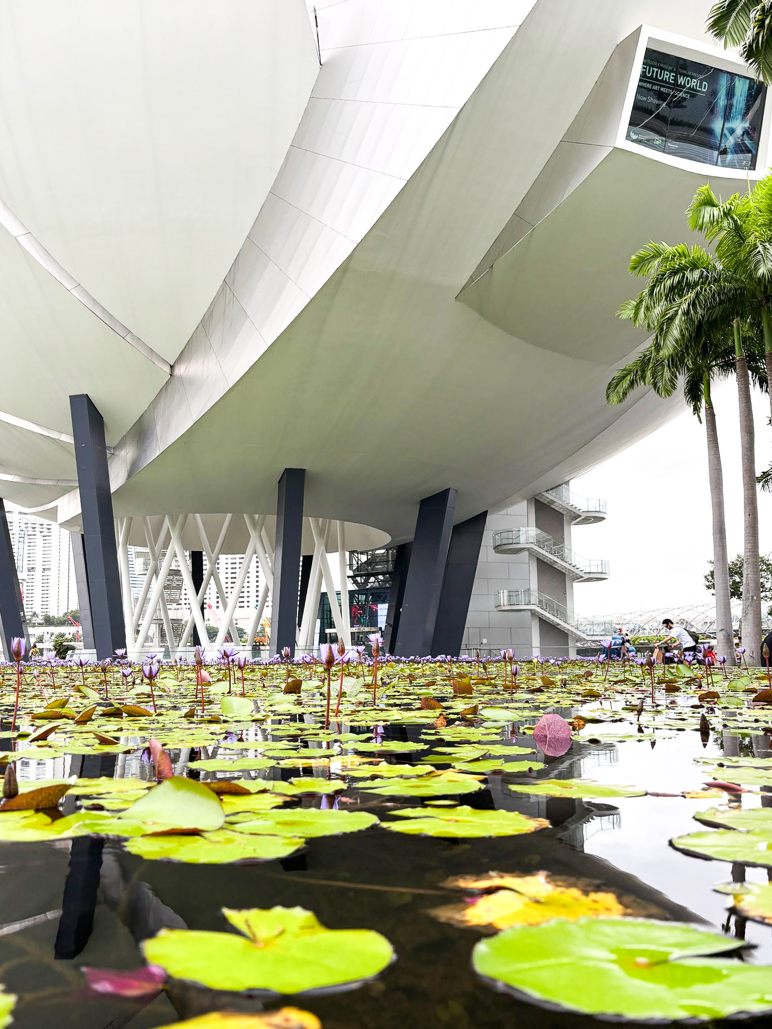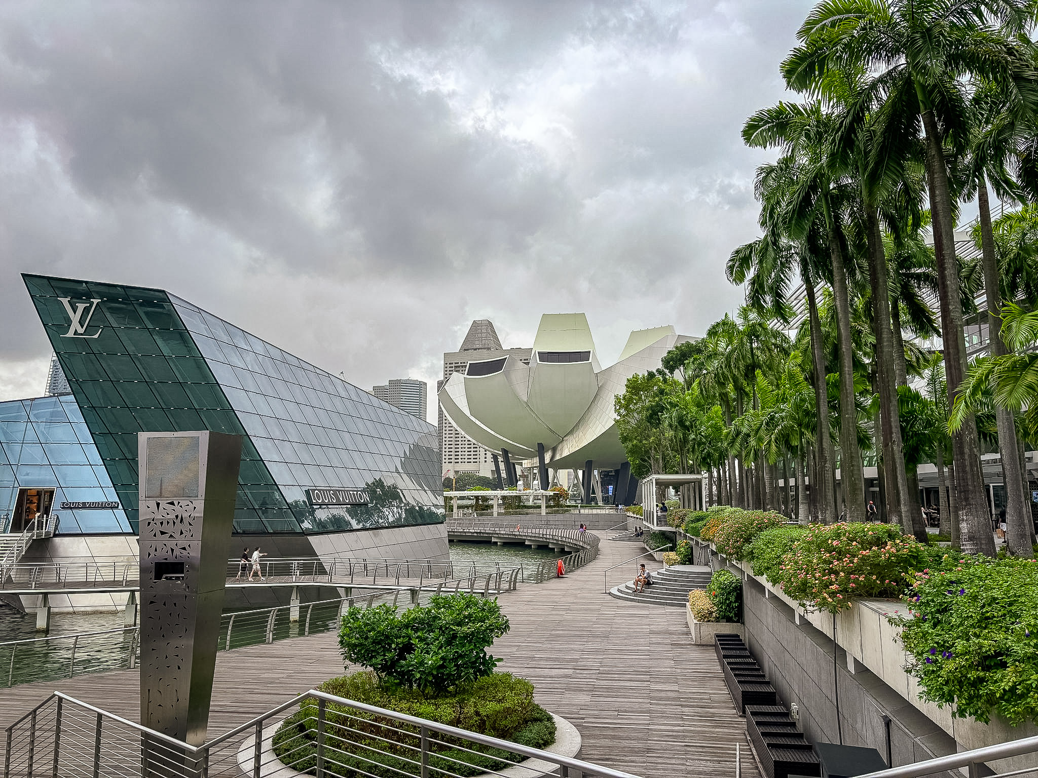 We spent the only evening of our visit basically in front of the Marina Bay Sands Shoppes and Expo. However I had enough stamina to walk to The Gardens by the Bay to see the Supertree Grove and take pictures of the beautiful ArtScience Museum, shaped like a flower, and, of course, Marina Bay Sands hotel. Everything seemed to be close by, even the Flyer, even though you would have to walk a bit from destination to another destination.