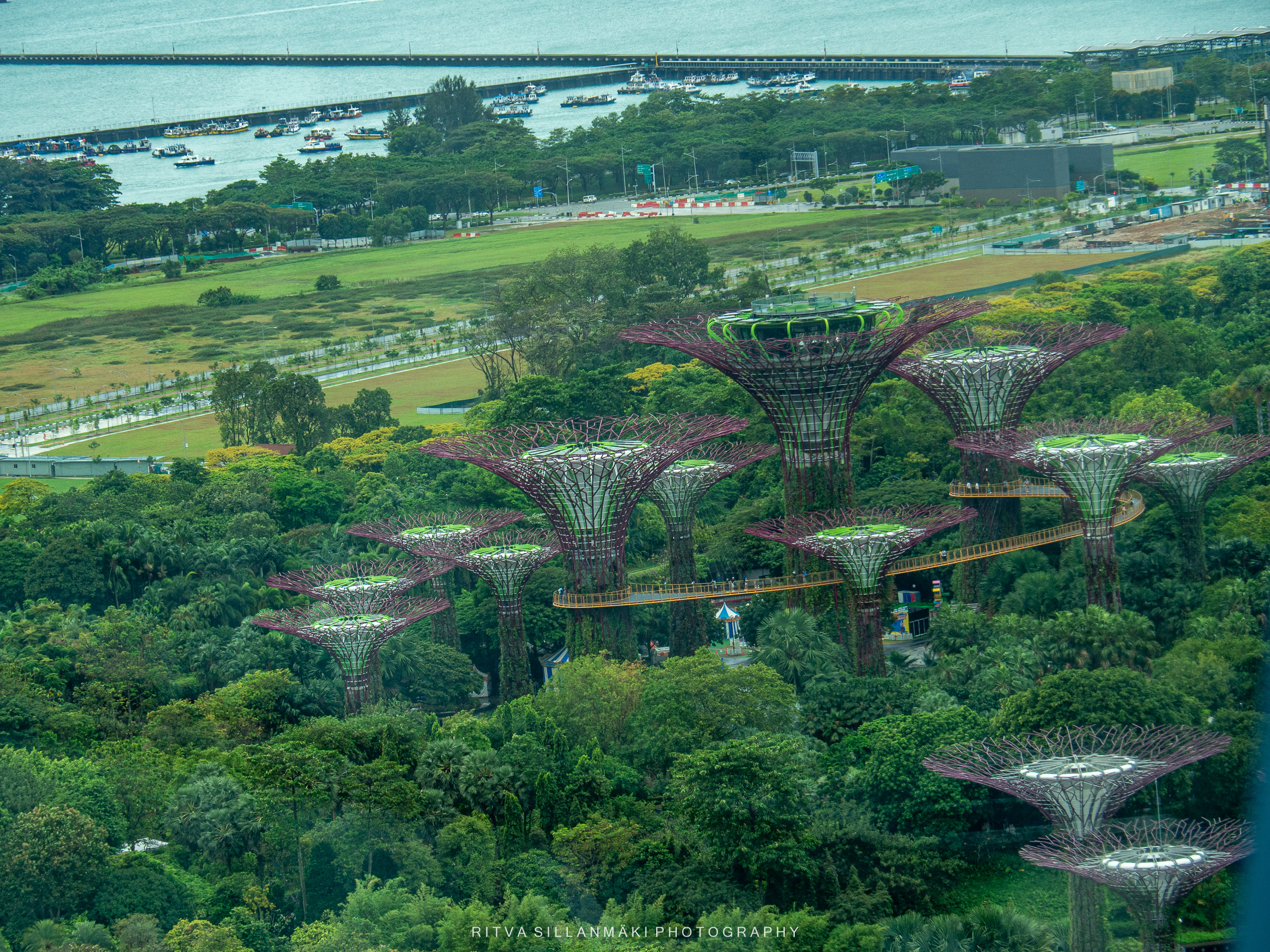 Singapore has a long history, but the present dominates the skyline. Fortunately, some of the old world still remains standing and you are able to see it even from the Flyer. What the buildings actually were, remains a mystery to us. The modern architecture really stands out, like the flower of ArtScience Museum, Esplanade-Theatres on the Bay and everything in the Gardens by the Bay. Skyscrapers are just skyscrapers and can be seen in every big city.
