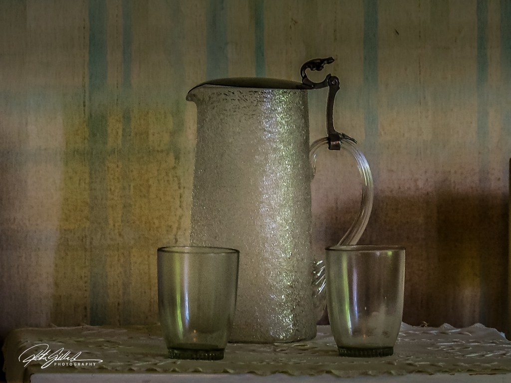 Old tableware, that’s what something I noticed and the very old wallpaper.