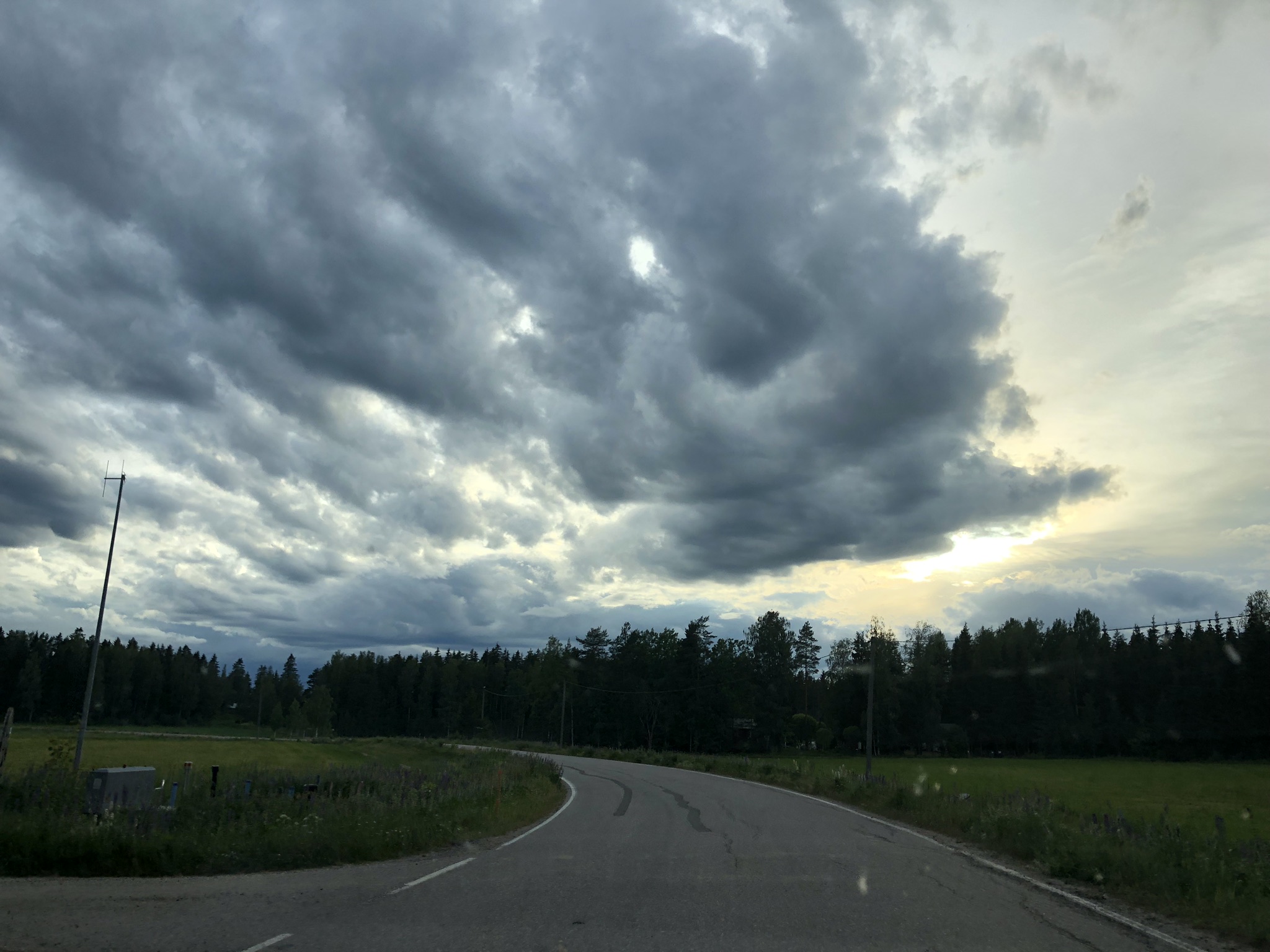 On the road again. Lines and lanes leading us towards a beautiful sunset on the warm and wet Saturday here in Southern Finland.