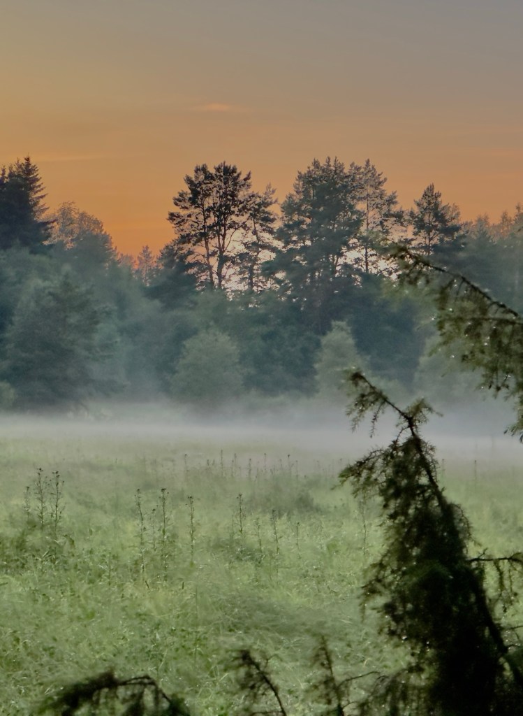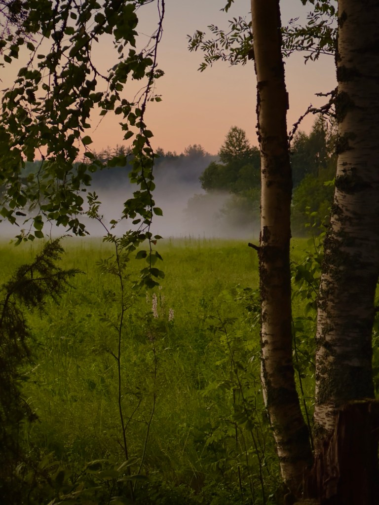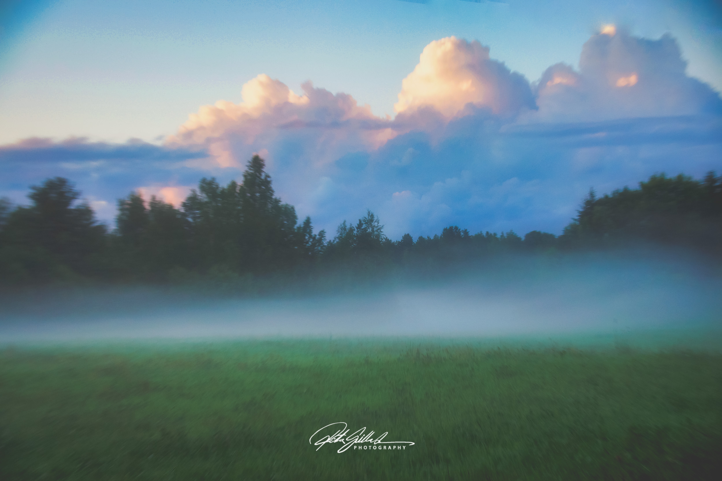 Mist rises like a delicate veil, weaving through the grasses and clover. It’s as if the earth exhales, releasing whispers of relief of the warm day.
