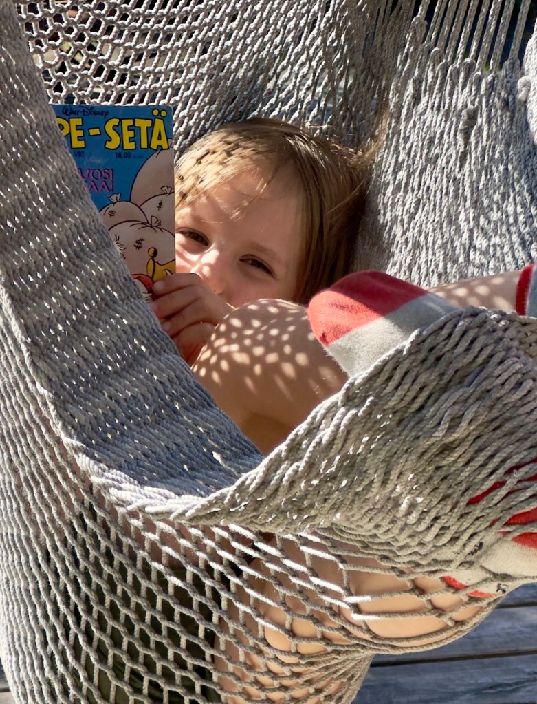 Months pass so quickly. Already July. I had my grandkids visiting us for ten days. On the last day the the youngest enjoyed this sitting hammock and he was so cute I had to take a several shots this was one of them.