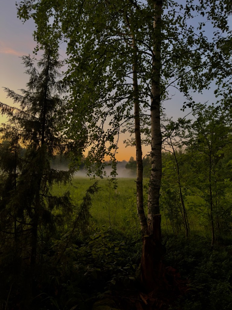 Birch trees stand sentinel, white and tall, Their leaves a verdant canopy, a gentle sprawl. Mist weaves through their trunks, a spectral dance, As dusk paints the sky in hues of chance.