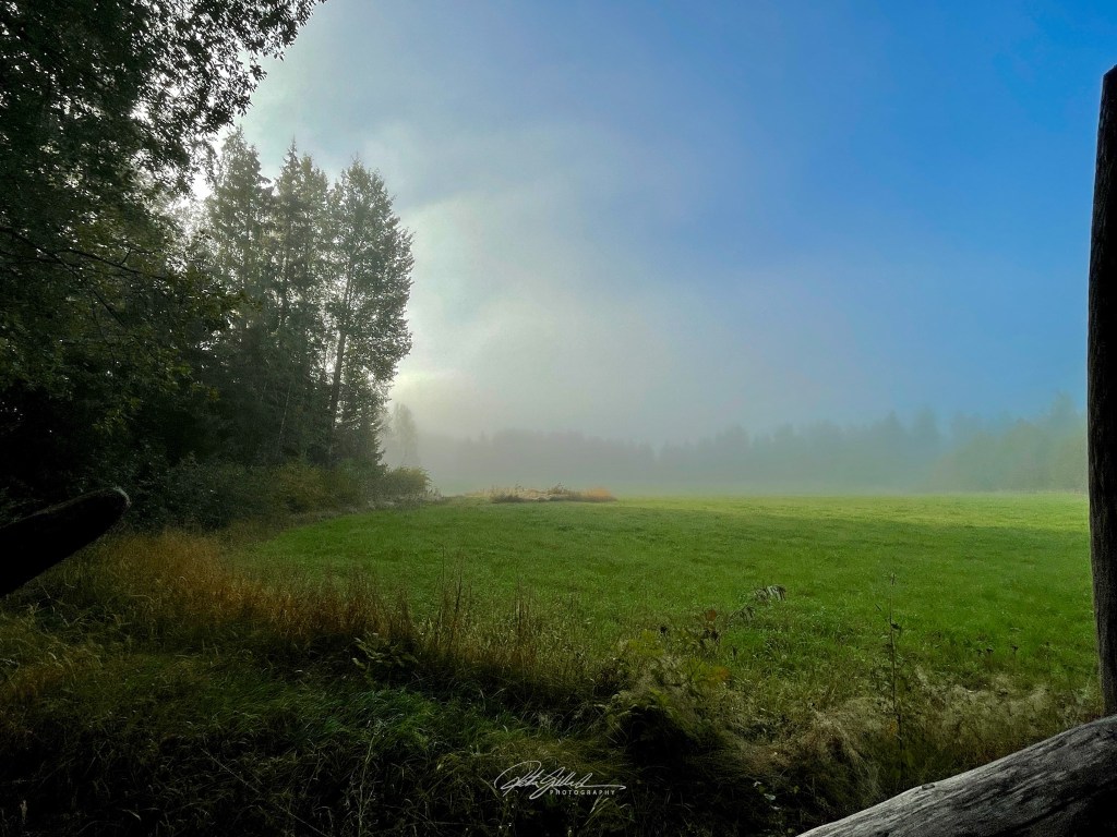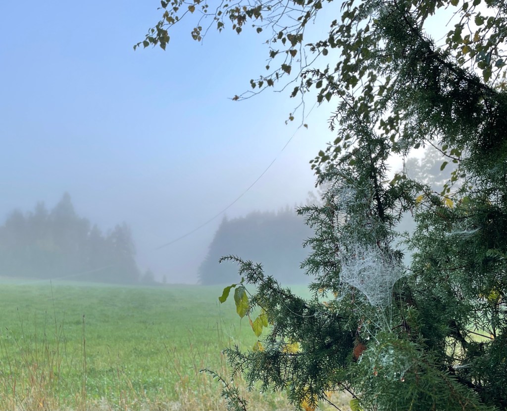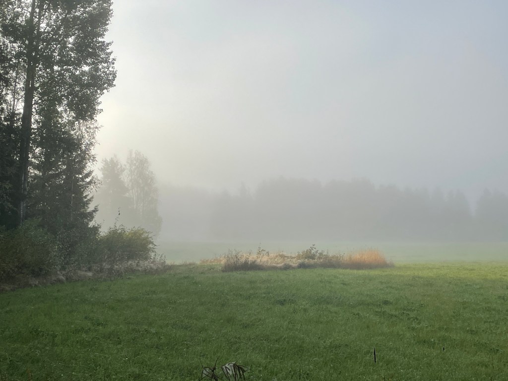 Foggy skies greeted us first thing in the morning, I took my time before I went outside to take some photos. I had my furry little friend following me. These I took with my mobile, and little bit later I took the camera for a walk.