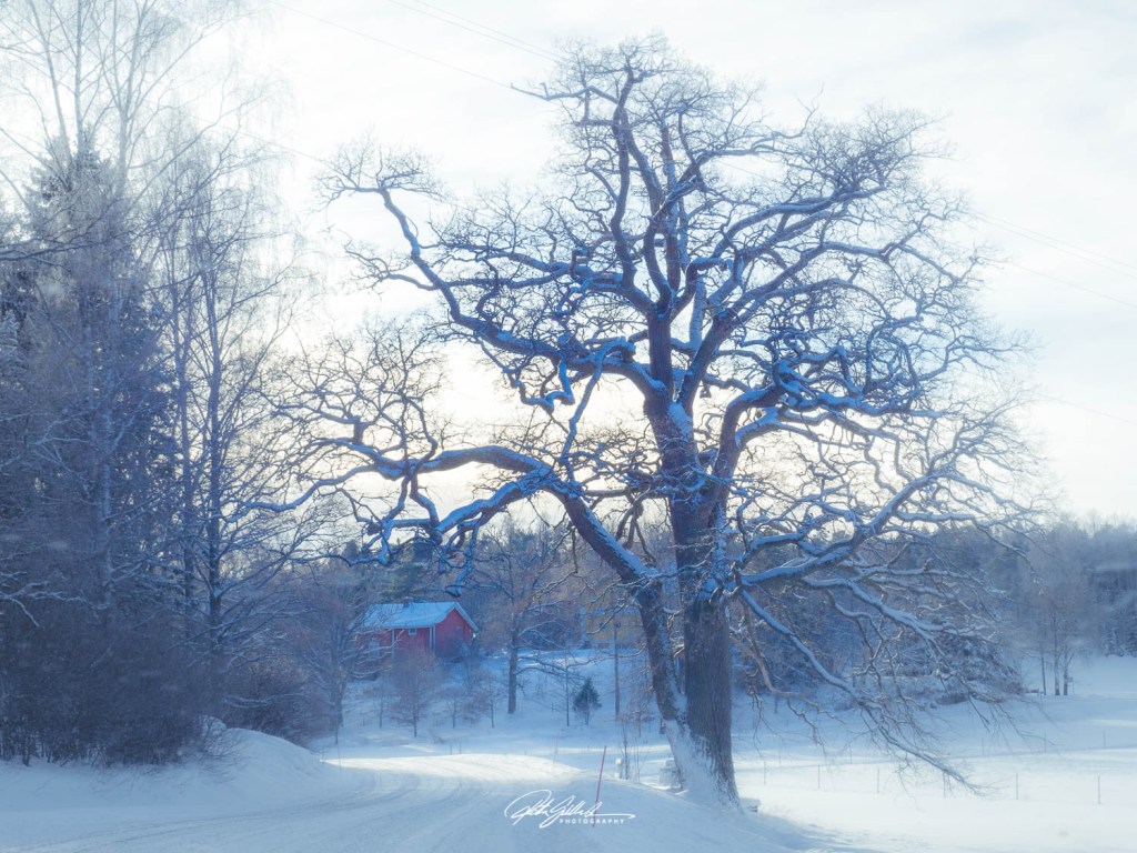I took several winter wonderland photos last week, so I thought I’d try them as monochrome. Misty fields and snow-covered