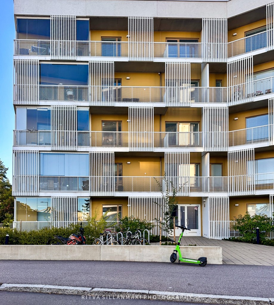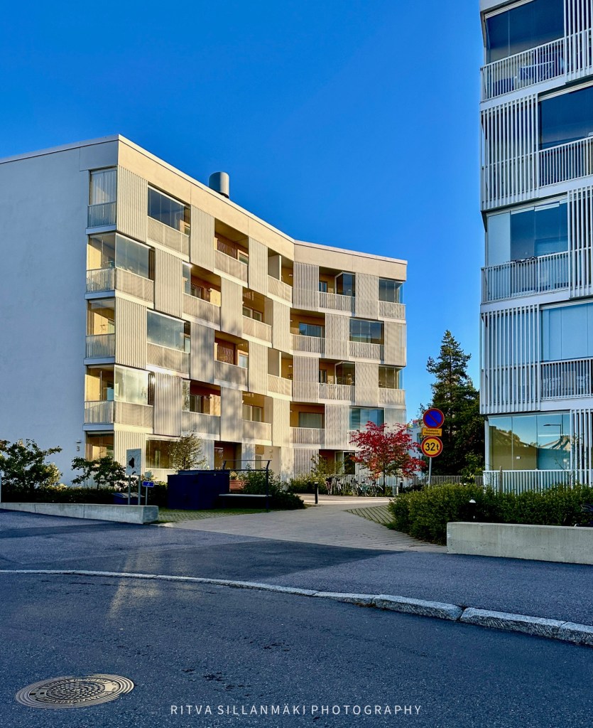 These apartments are located in Tapiola, one of the suburbs of Espoo, Finland. These are some of the more modern apartment buildings. Just a block away from here, my grandmother lived for over thirty years.