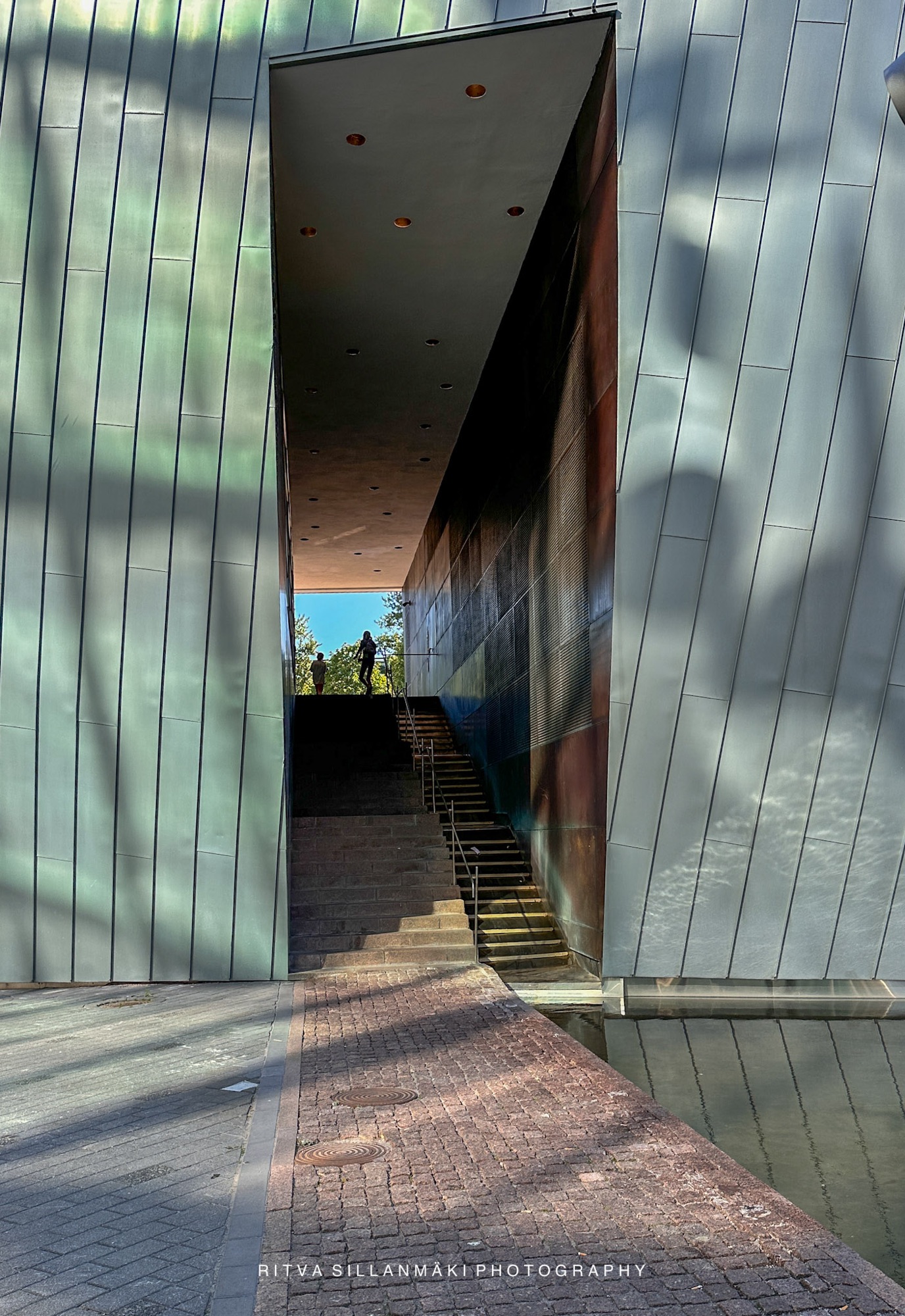 Kiasma is a museum of contemporary art under the umbrella of the Finnish National Gallery. The primary focus in the museum collection is on Finnish contemporary art. Kiasma was designed by the American architect Steven Holl and opened to the public in 1998. At Kiasma there’s also a museum shop and café. These are all taken from the backside of the building.