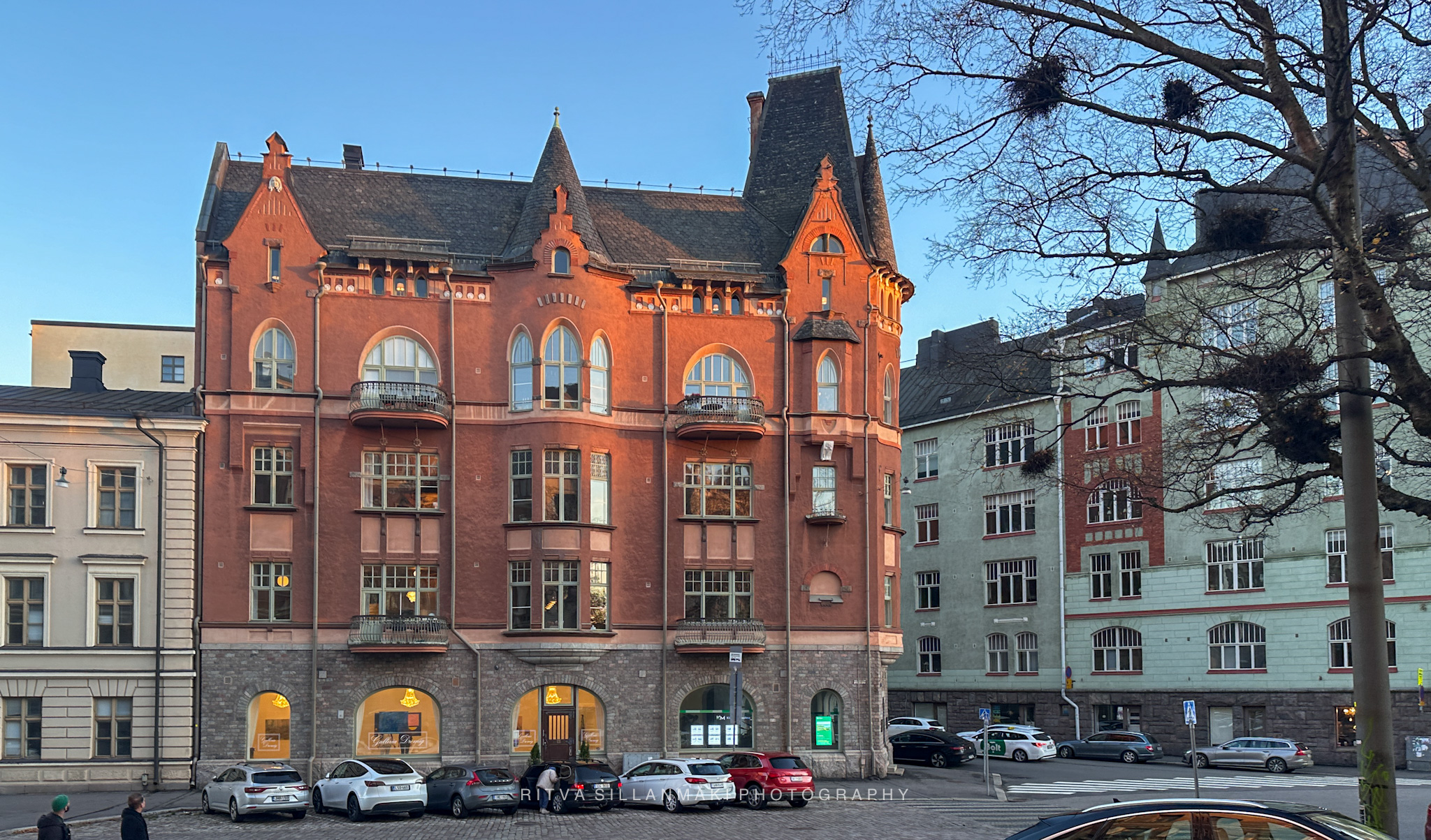The western part of the residential area, known as the “Old Side” of Katajanokka, is an upscale neighborhood and a well-preserved example of early 20th century Art Nouveau architecture, though up until the mid-19th century – while the centre of Helsinki was being filled with stone buildings – the area was essentially still a wooden shanty town.