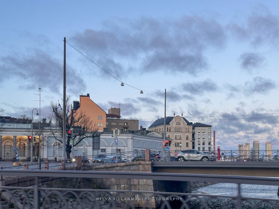 This us driving away from Katajannokka on one of the bridges, in the corner is the part of the The Presidential Palace.