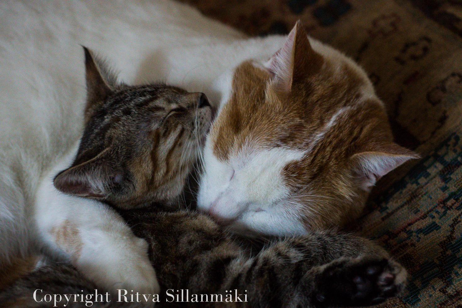 I have been watching this kitty of ours, Tinka, a lot, her watching the surrounding. Tinka and Veikka bonding…it is so sweet:-)
