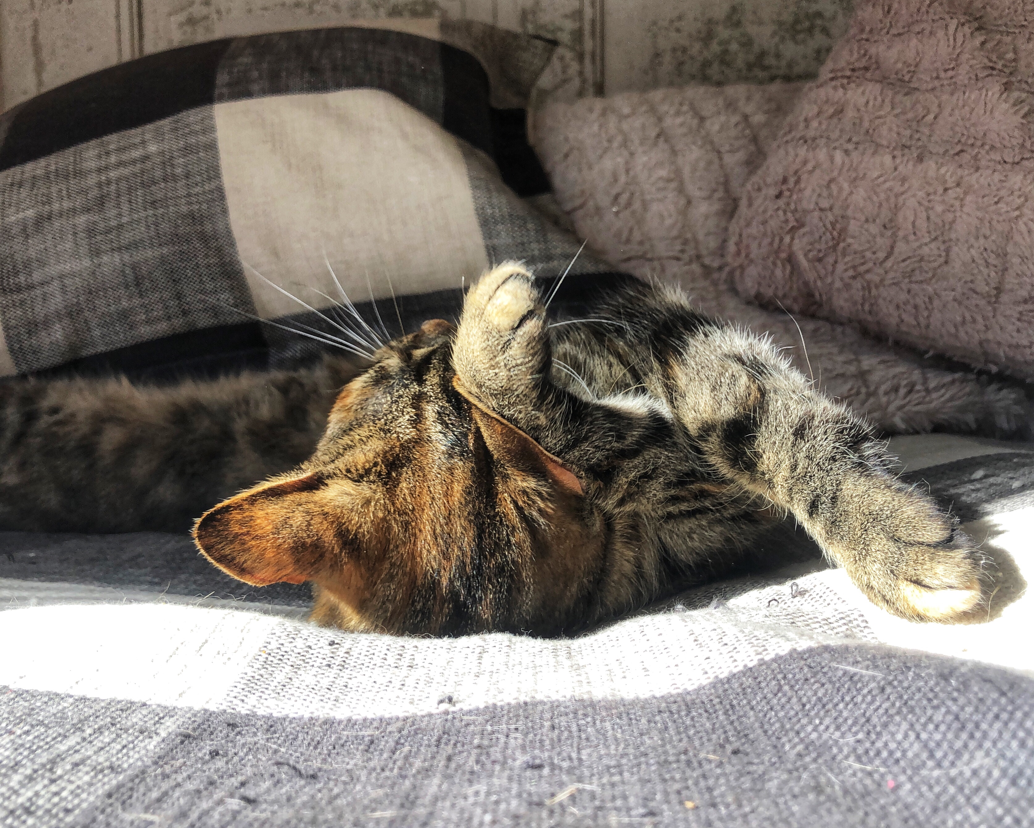I should take it like Tinka, lay down and relax. Yesterday I did. I usually do not nap, hardly ever, yesterday my eyelids were so heavy I had to give in. One hour in the afternoon. This is what it has come to. Napping. I felt like Tinka below, this is what’s it’s come to.