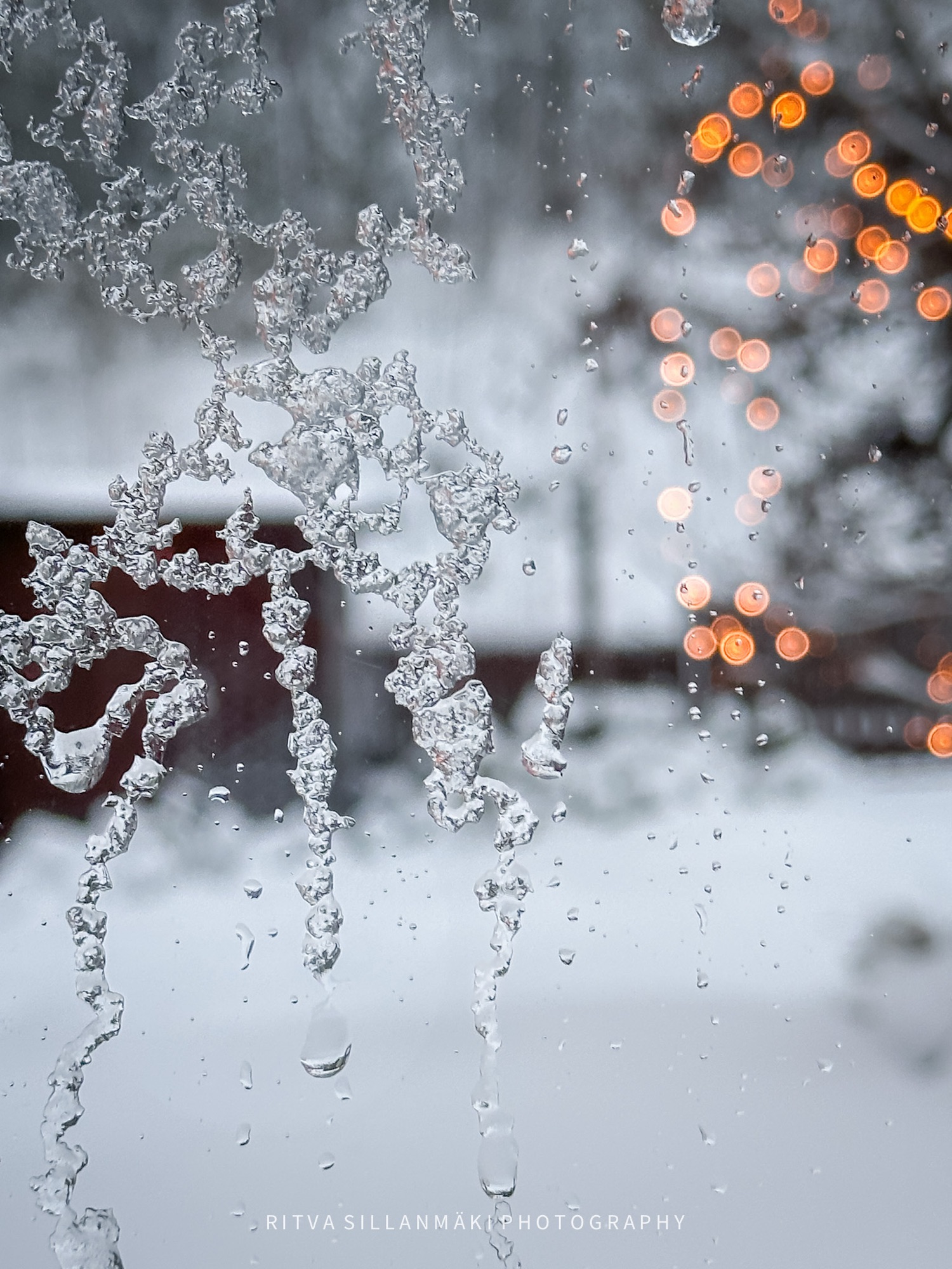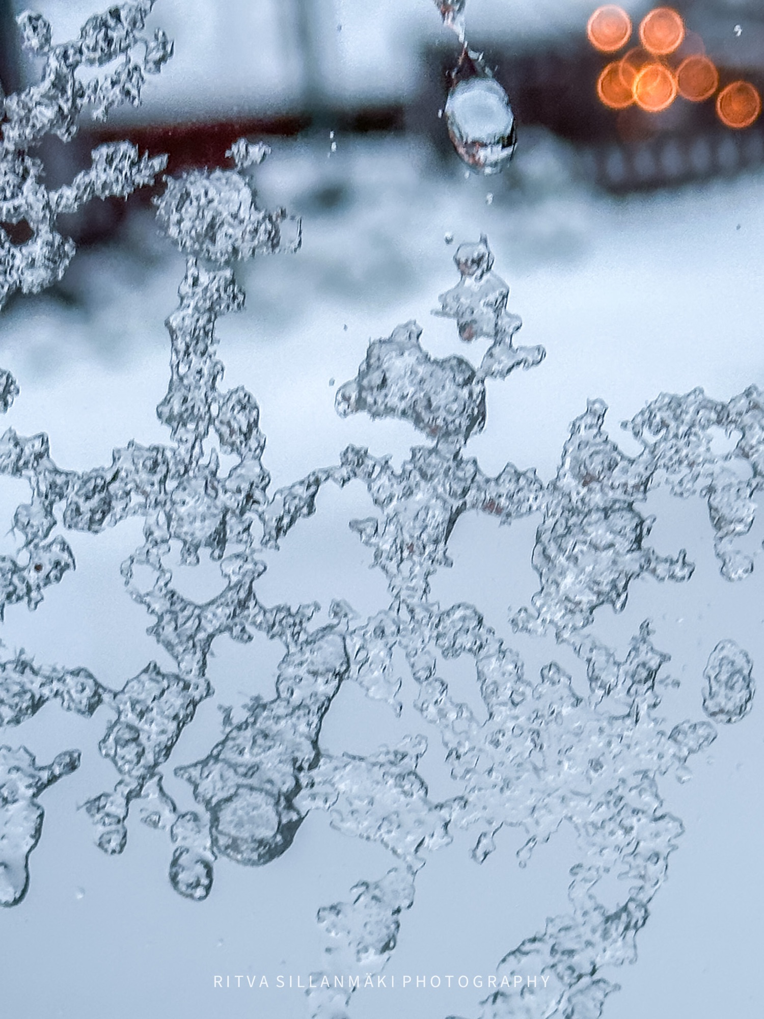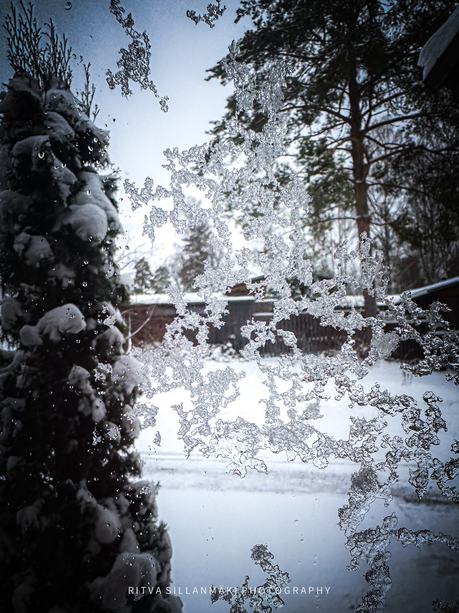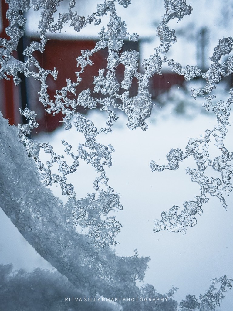 Just the other day, the wind blew wildly, causing slush to accumulate on the windows facing east and west, painting a messy but intriguing picture of the weather’s influence on our surroundings. I couldn’t resist the opportunity to capture this moment, and so I took several photos of the slushy windows, hoping to convey the unique elegance of Finland’s winter weather, even when it is less than ideal.